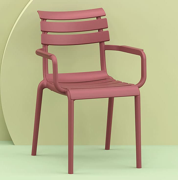 Стул пластиковый Siesta Paris Винный (Marsala) – современный пластиковый стул для улицы и интерьера. Подходит для террасы, сада, кафе и ресторана. Изготовлен из прочного полипропилена, устойчив к ударам, изгибам, влаге, УФ-лучам и перепадам температуры, полностью антистатичен.