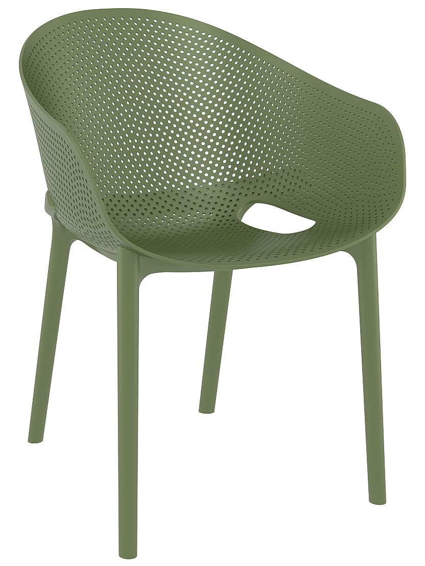 Стул пластиковый Siesta Sky Pro Зеленый (Olive Green) – современный пластиковый стул для улицы и интерьера. Подходит для террасы, сада, кафе и ресторана. Изготовлен из прочного полипропилена, устойчив к ударам, изгибам, влаге, УФ-лучам и перепадам температуры, полностью антистатичен.