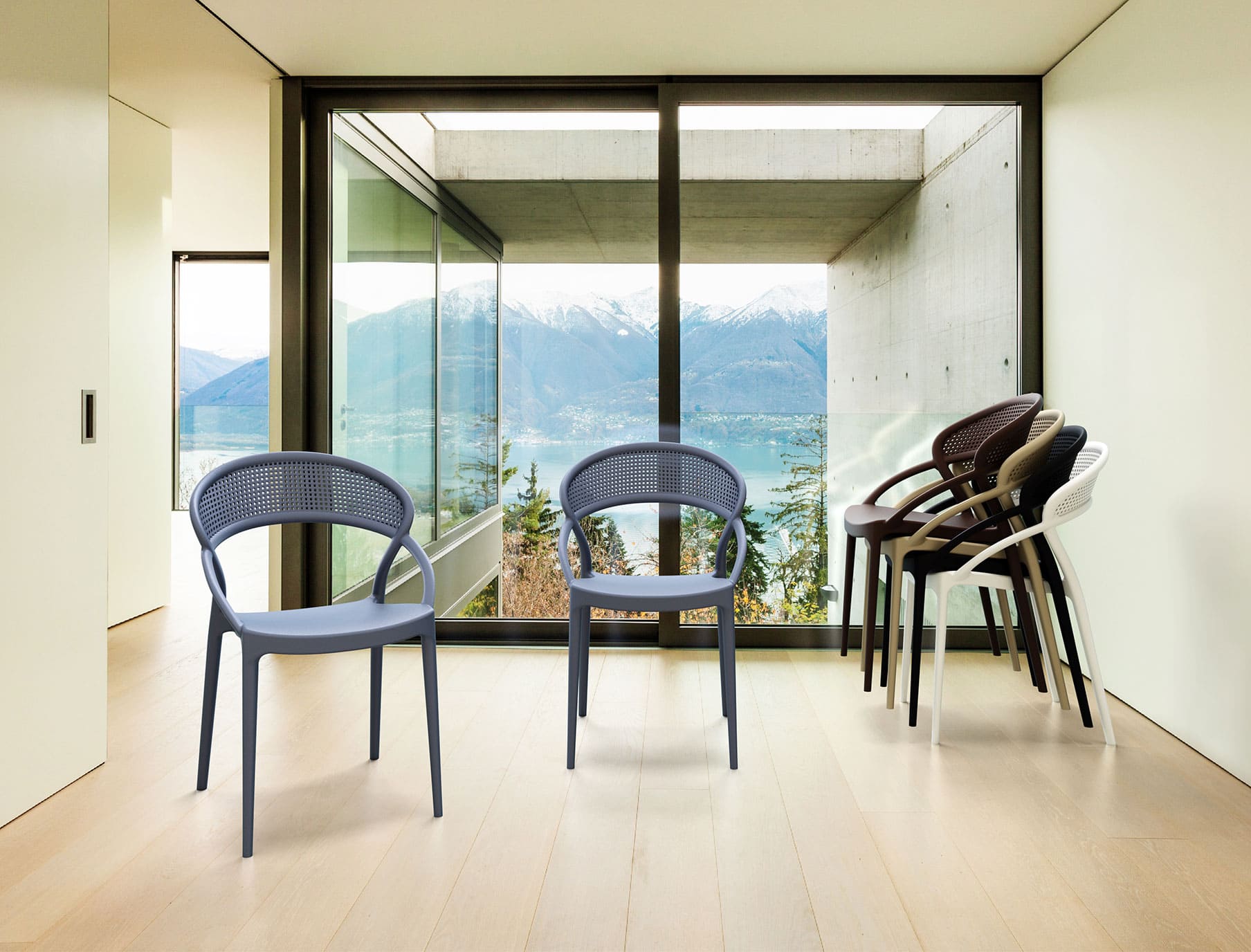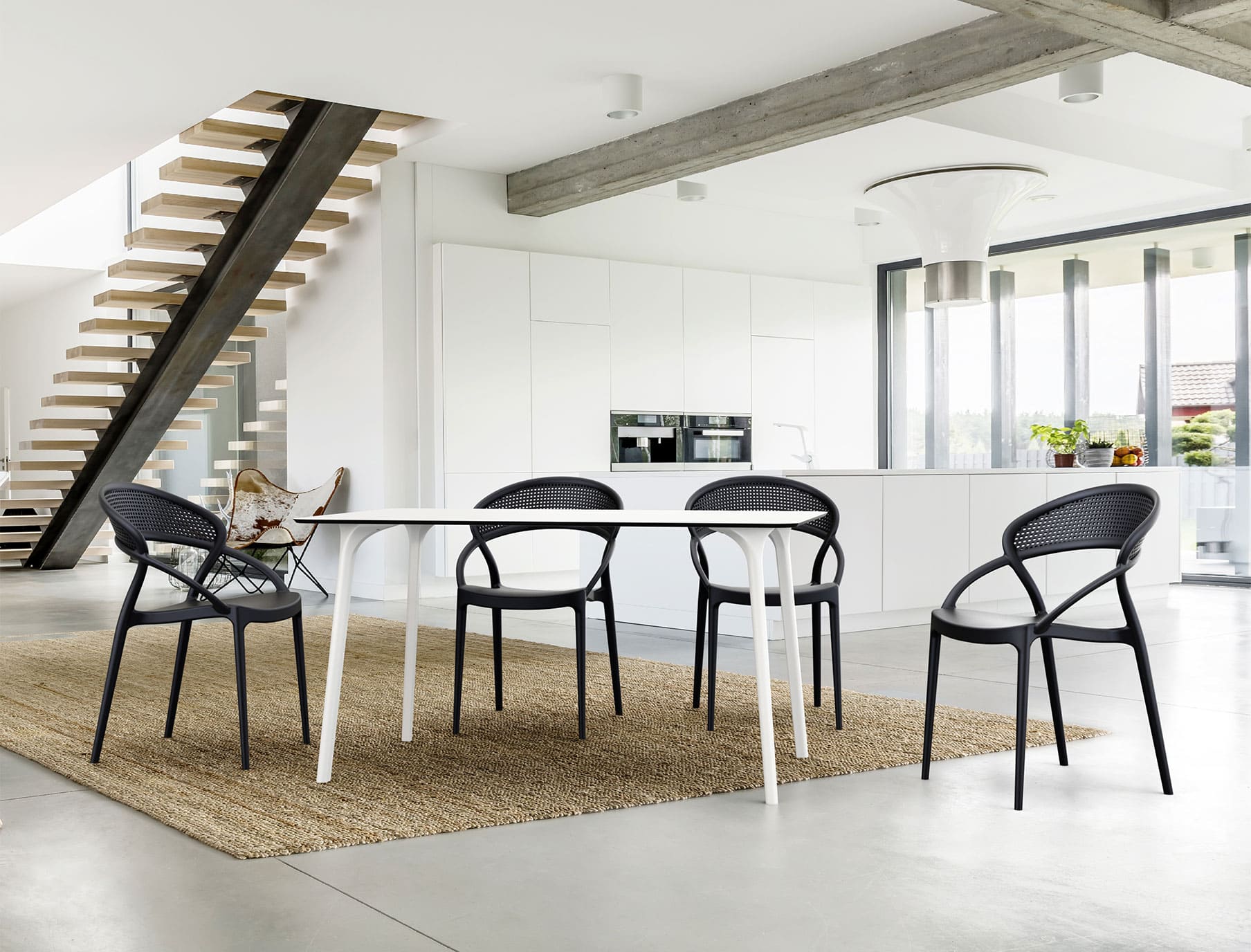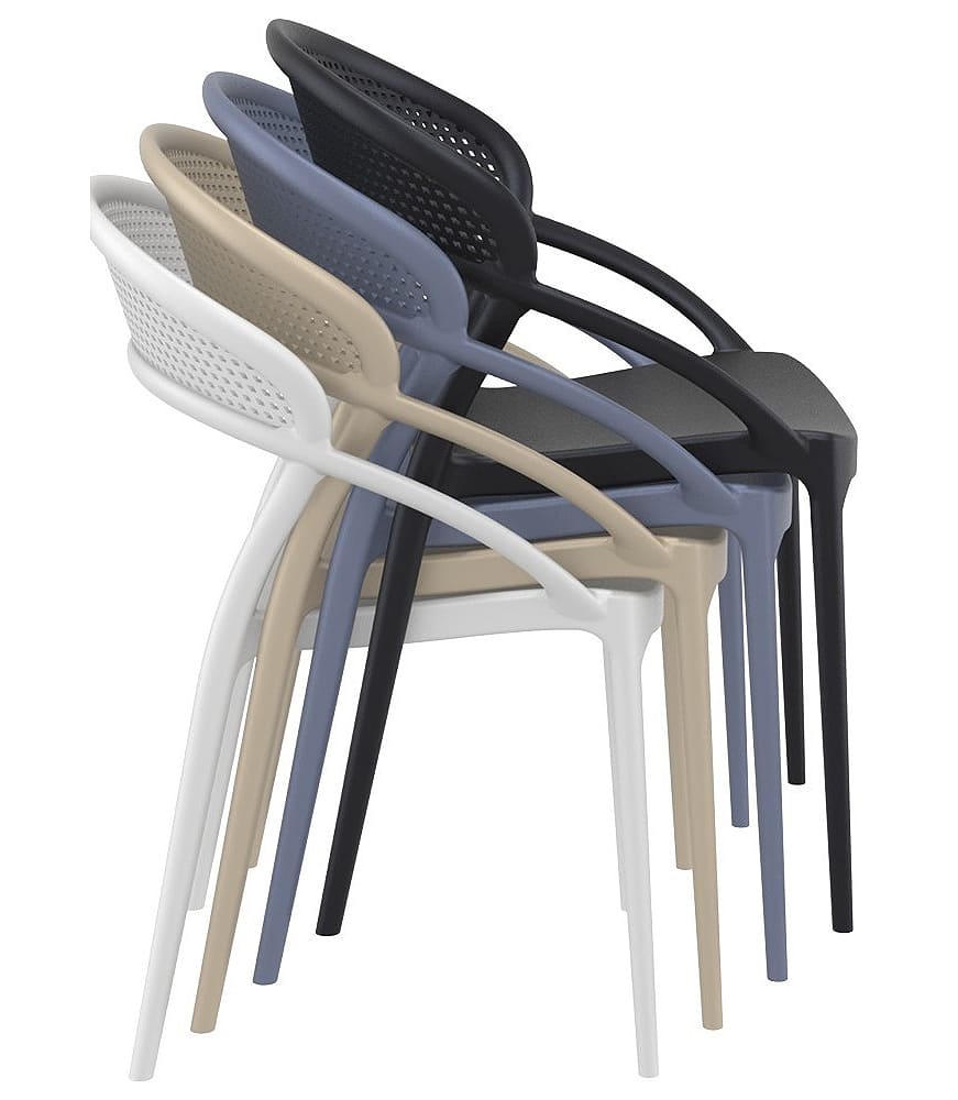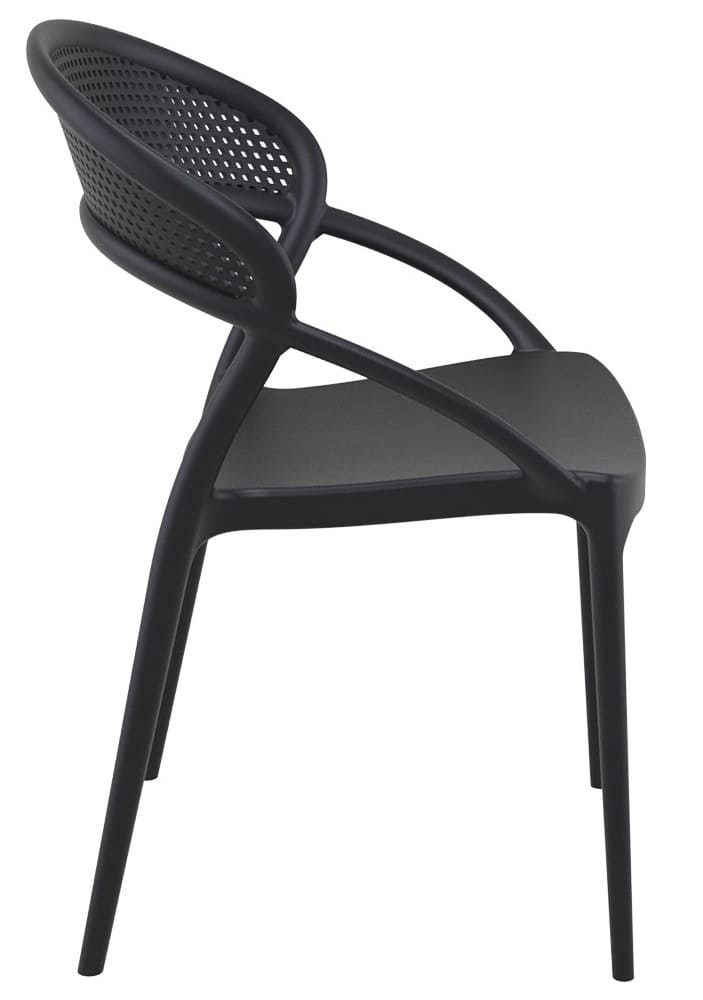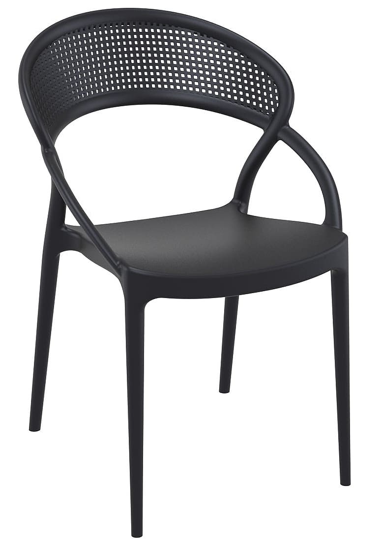 Стул пластиковый Siesta Sunset Черный (Black) – современный пластиковый стул для улицы и интерьера. Подходит для террасы, сада, кафе и ресторана. Изготовлен из прочного полипропилена, устойчив к ударам, изгибам, влаге, УФ-лучам и перепадам температуры, полностью антистатичен.