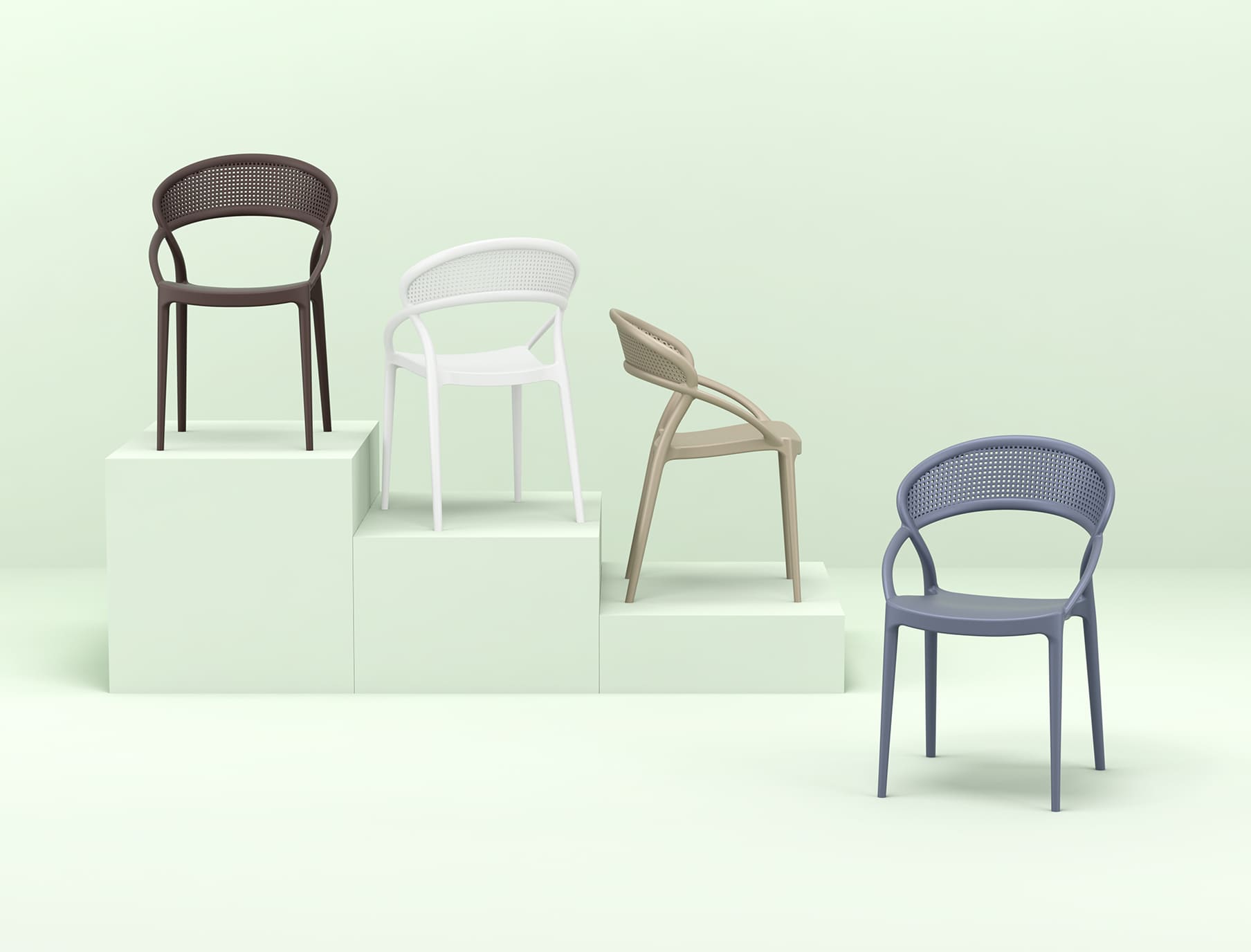 Модель представлена в разных цветах. Штабелируемый уличный стул удобен для хранения, транспортировки и коммерческого использования. Отличный выбор для летней площадки, террасы или стильного оформления дома.