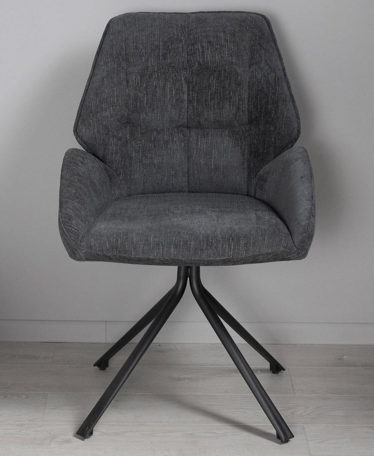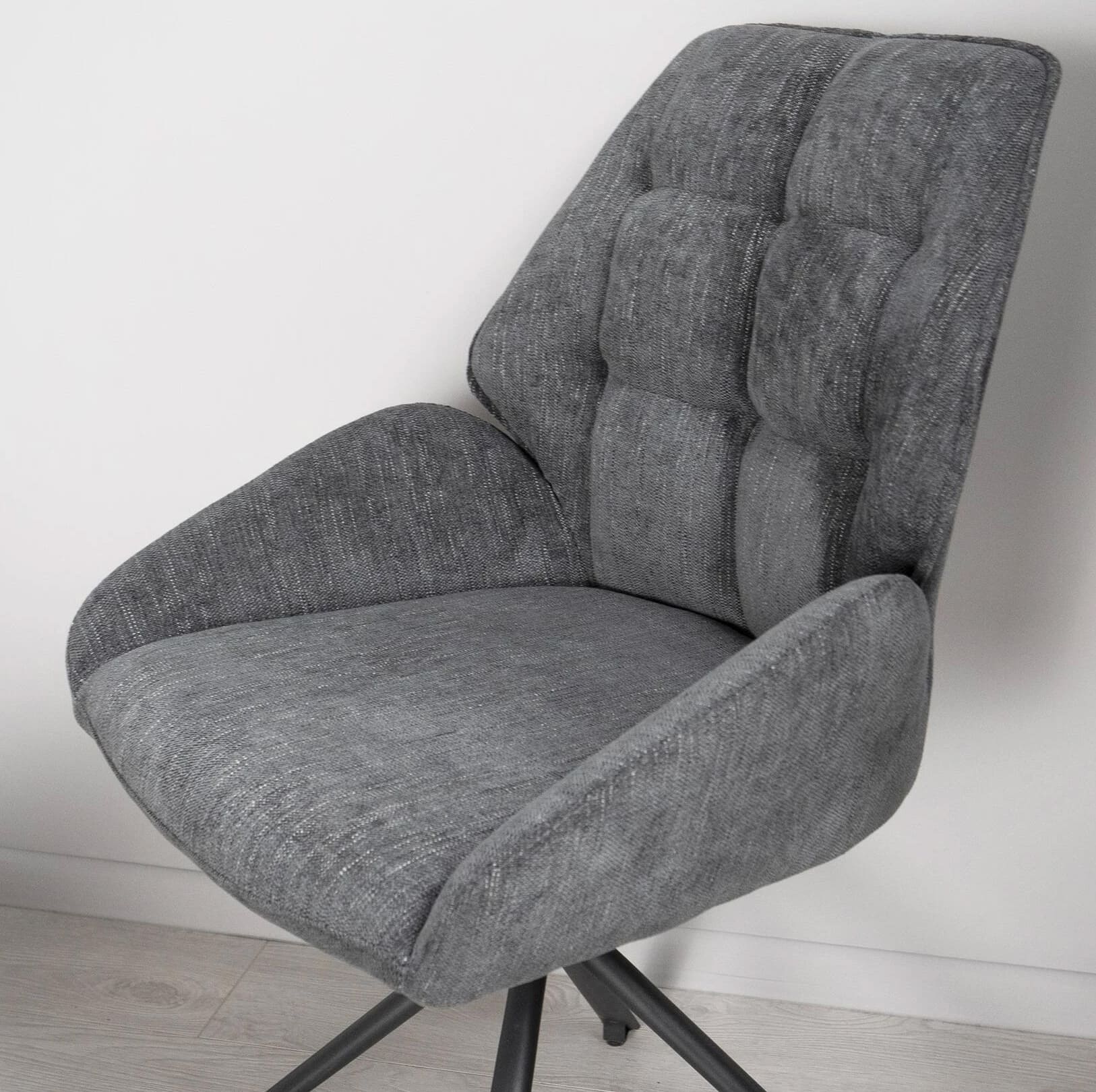 Универсальный и стильный выбор для кухни, столовой или домашнего офиса — Стул поворотный Prestol Соло Графит сочетает комфорт, функциональность и современный внешний вид. Обивка из текстурированного льна или ткани графитового цвета создаёт ощущение уюта, а каркас из чёрного металла обеспечивает надёжность и устойчивость.