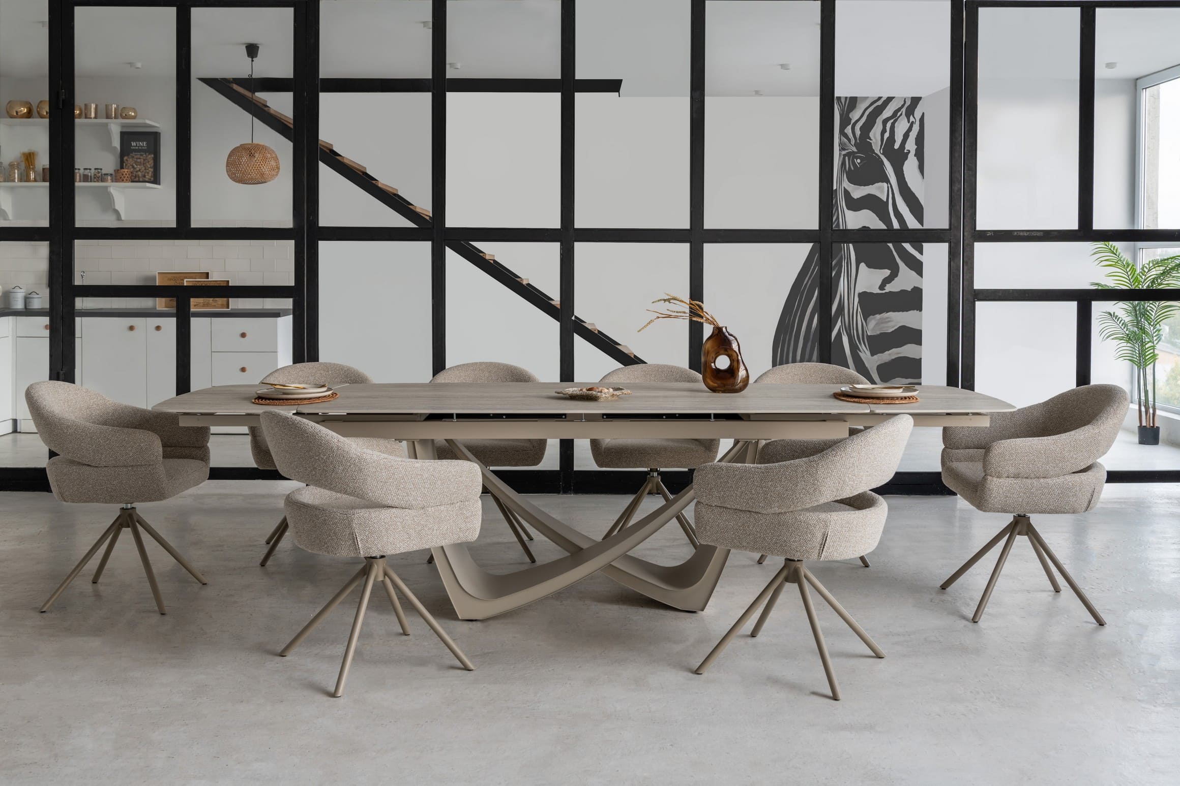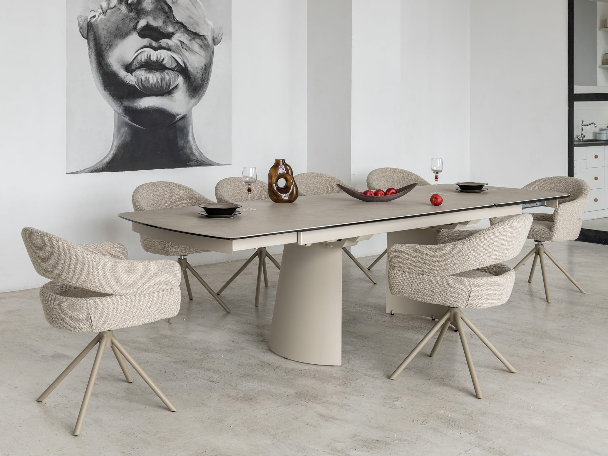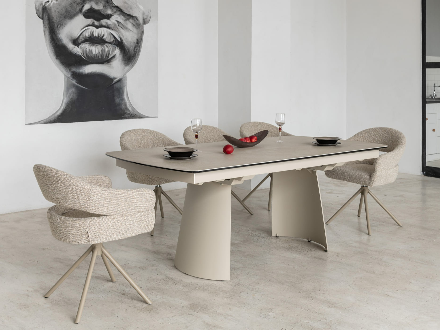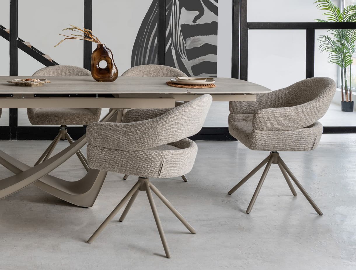 Поворотное кресло R-180 в оттенках бежевого льна и капучино - сочетает современный стиль и максимальный комфорт.