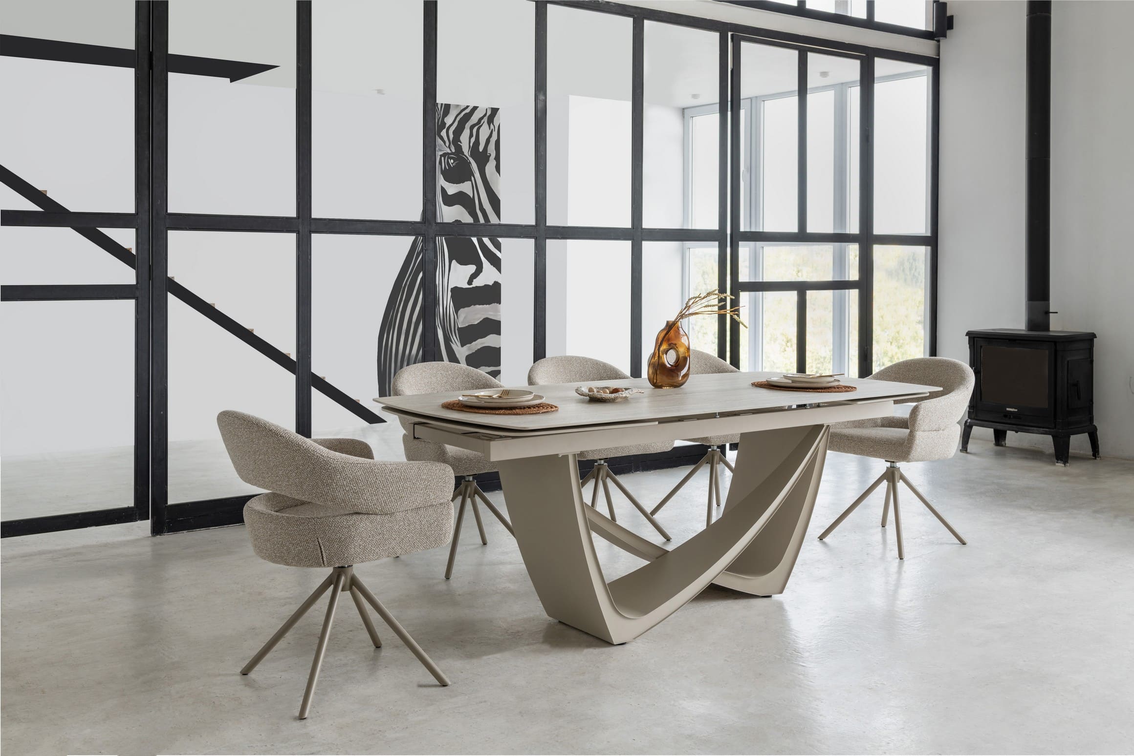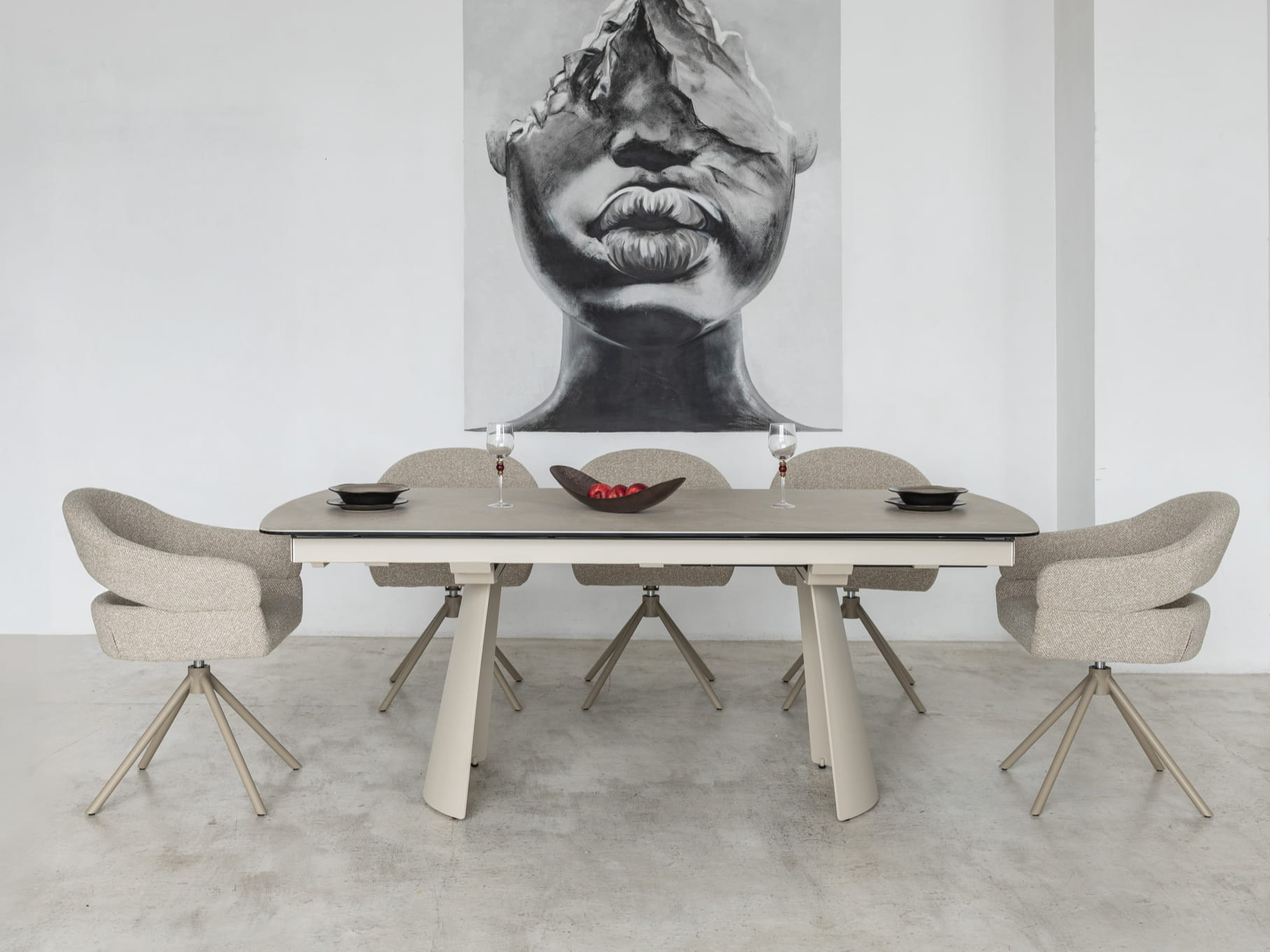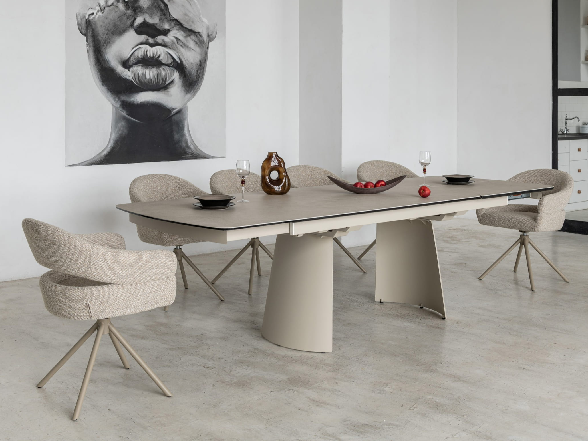 Поворотное кресло R-180 в оттенках бежевого льна и капучино - сочетает современный стиль и максимальный комфорт.