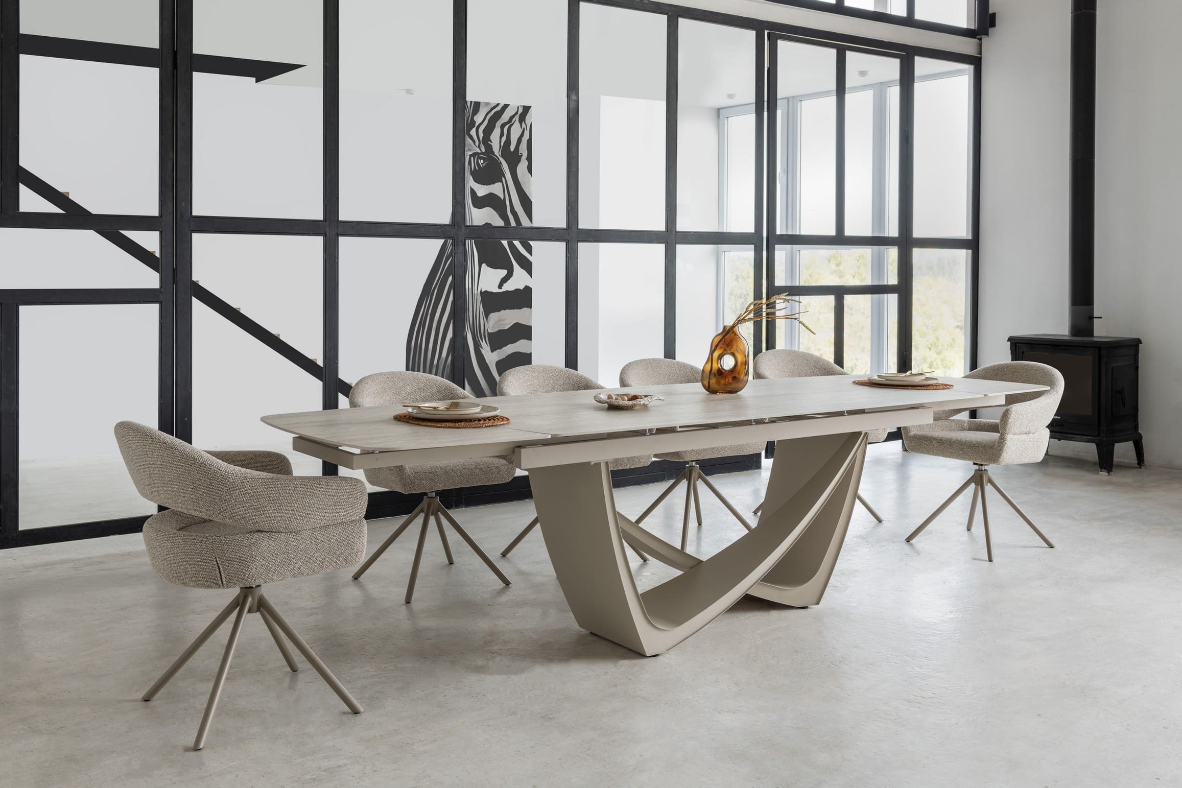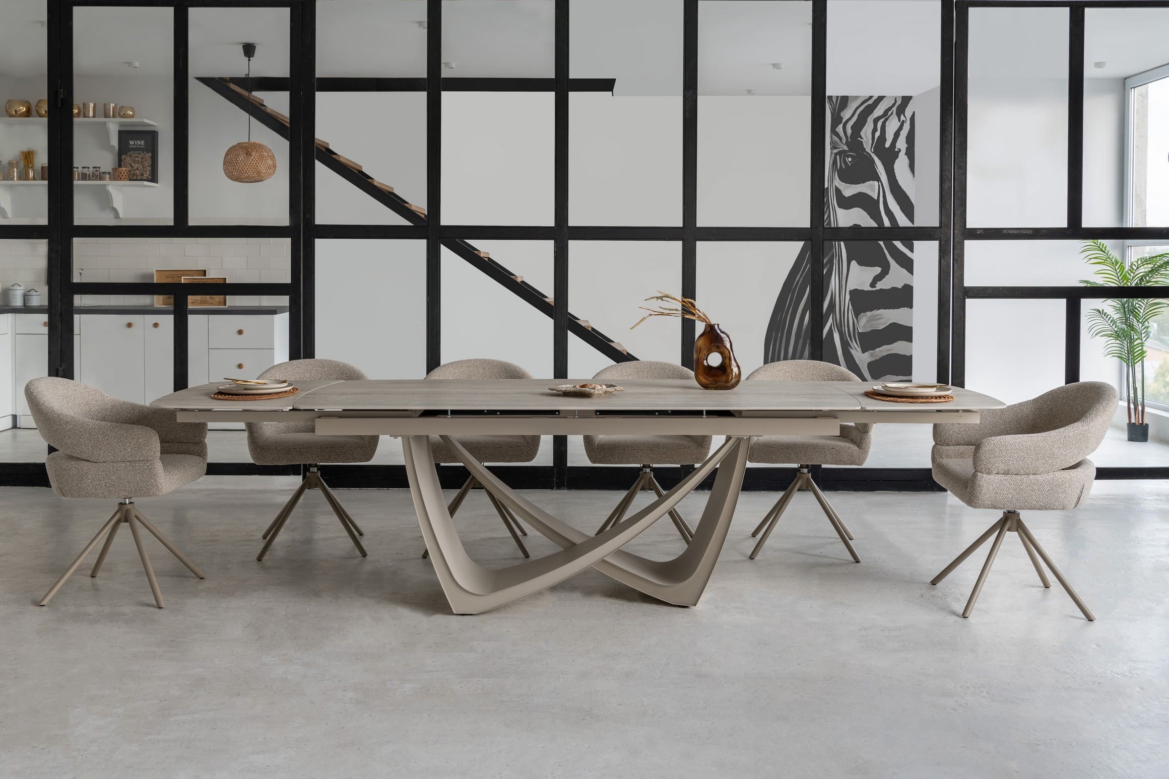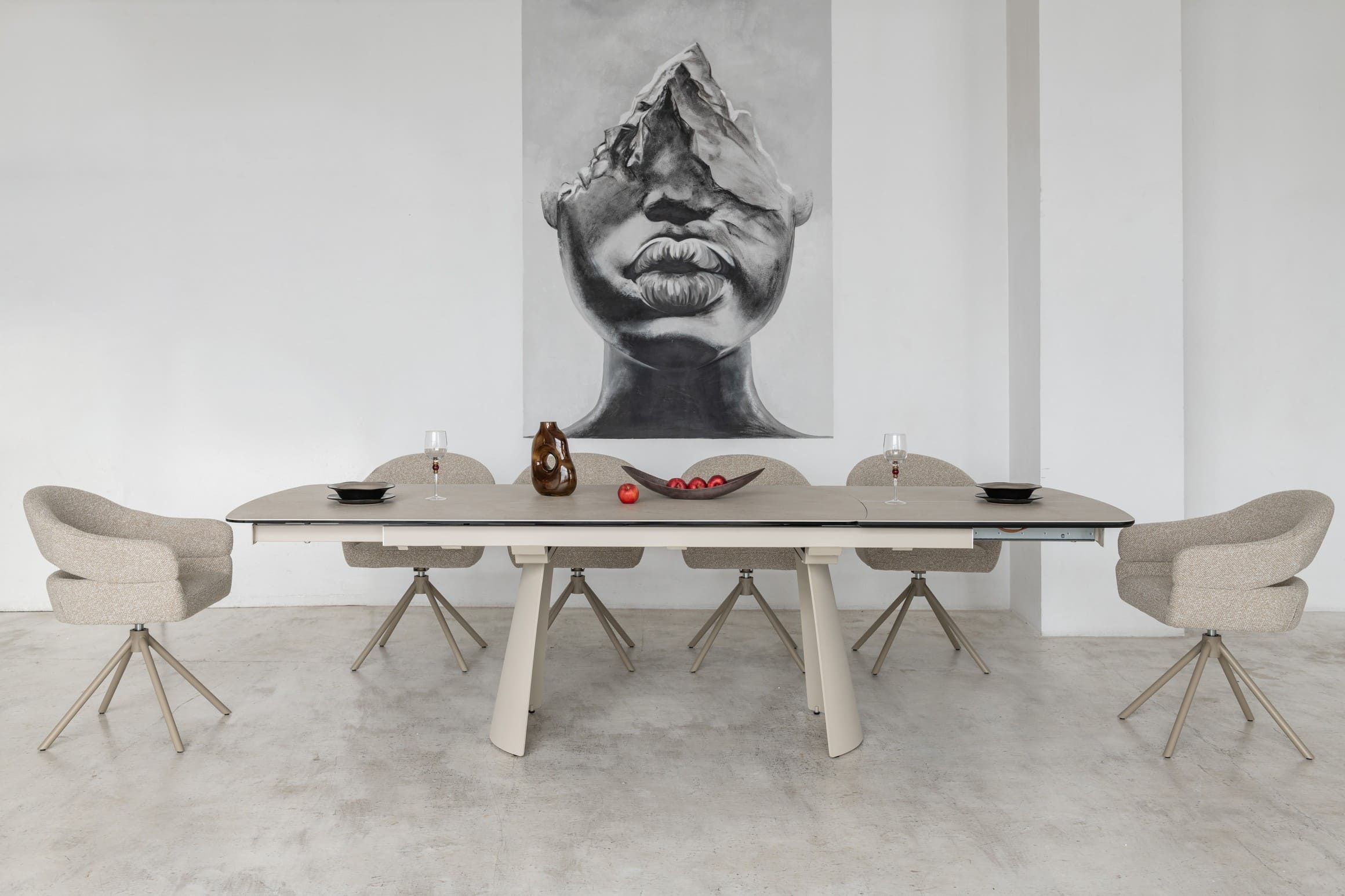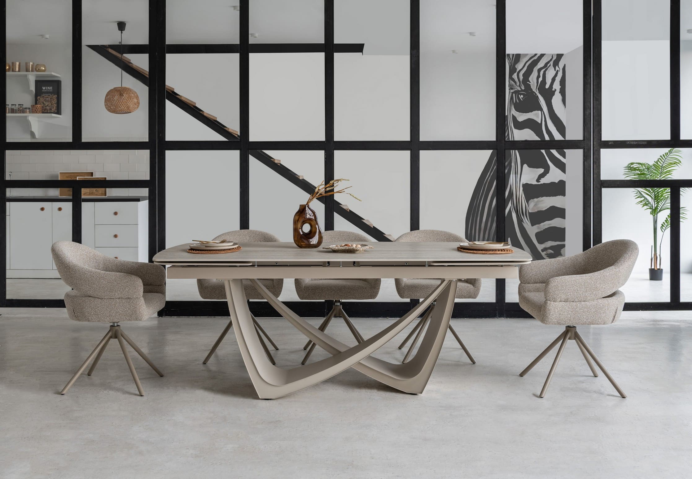 Поворотное кресло R-180 в оттенках бежевого льна и капучино - сочетает современный стиль и максимальный комфорт.