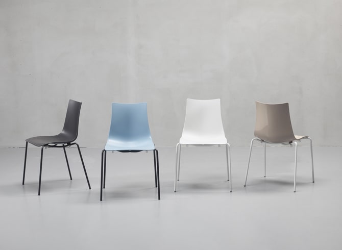 Пластиковый полубарный стул Zebra Technopolymer Barstool с корпусом из переработанного технополимера от дизайнера Luisa Battaglia. Каркас выполнен из хромированной стали диаметром 16 мм.