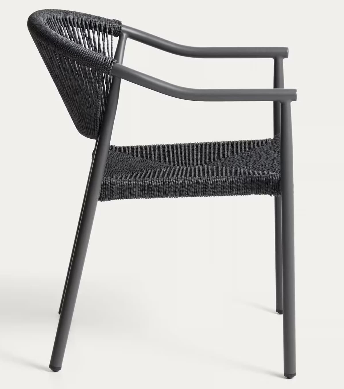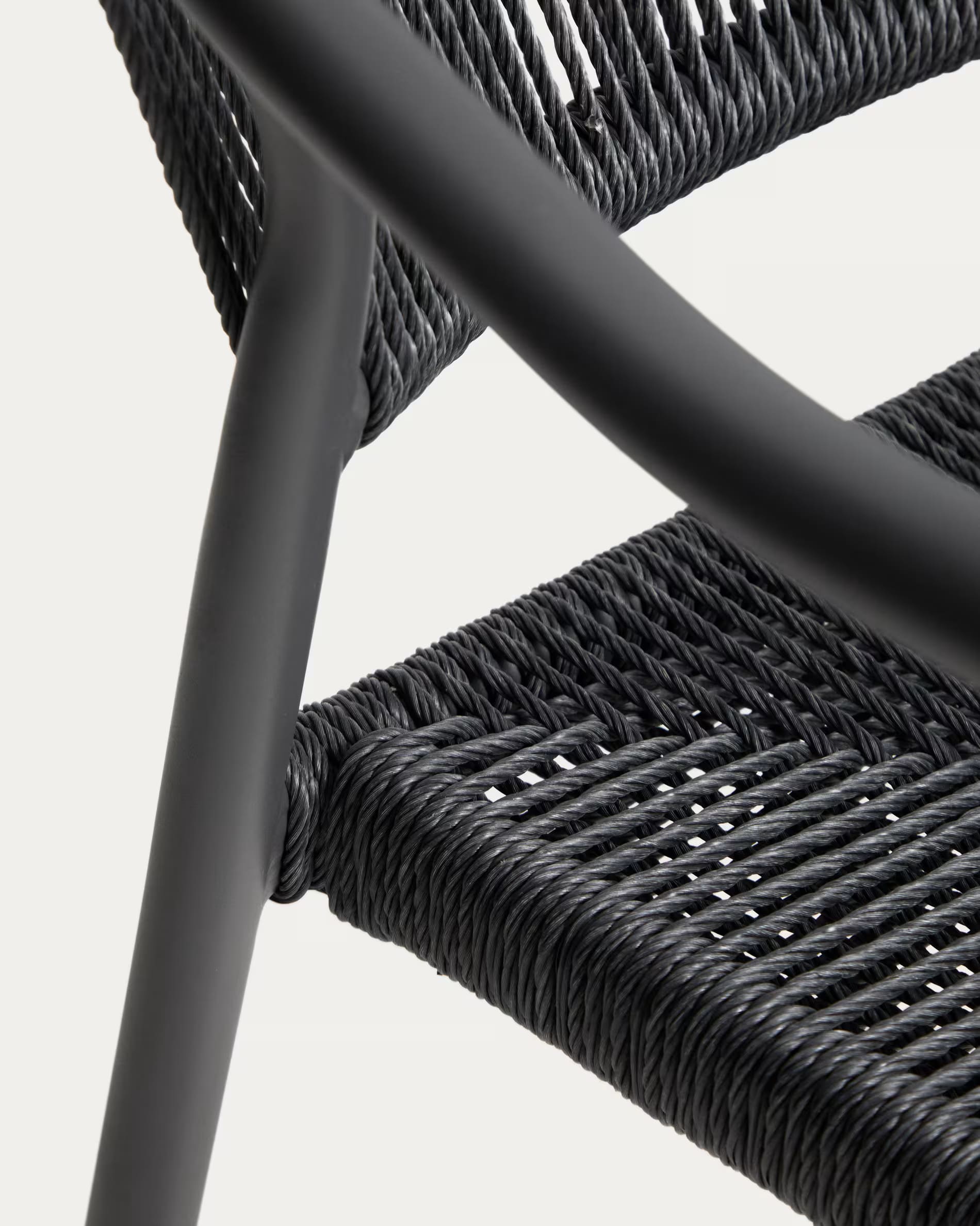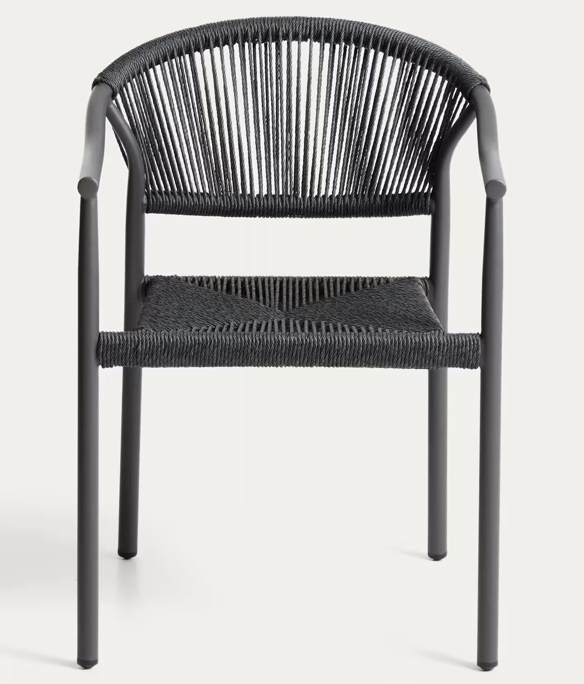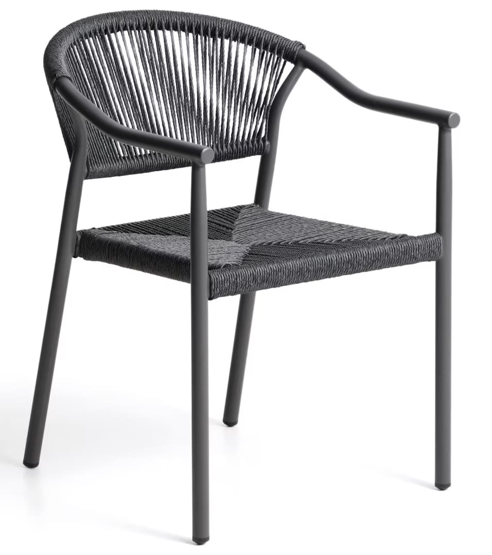 Уличный стул La Forma Livadia Графит — современный стул для террасы, балкона или кафе. Легкий алюминиевый каркас устойчив к влаге, коррозии и ультрафиолету, а плетеное сиденье из синтетической веревки обеспечивает комфорт и вентиляцию. Подходит для использования на улице и в помещении, легко штабелируется.