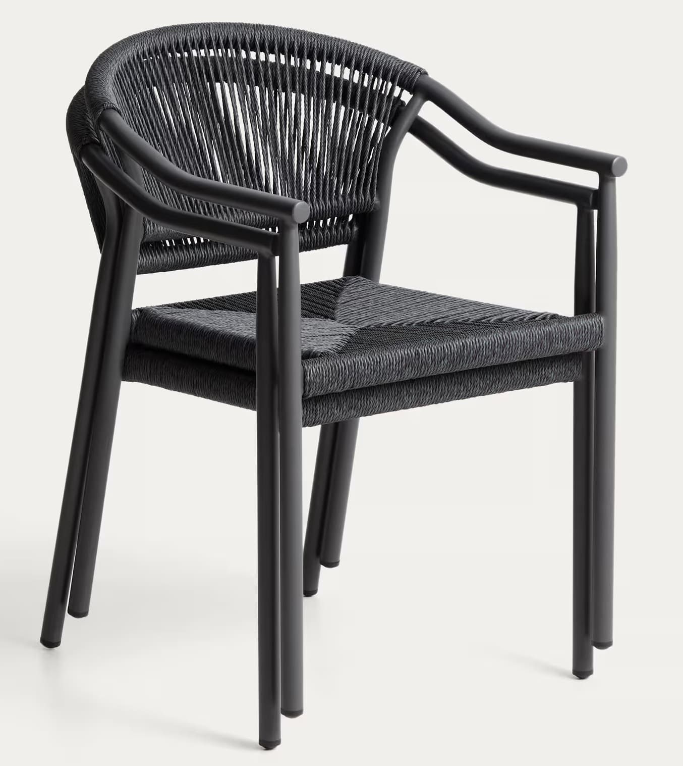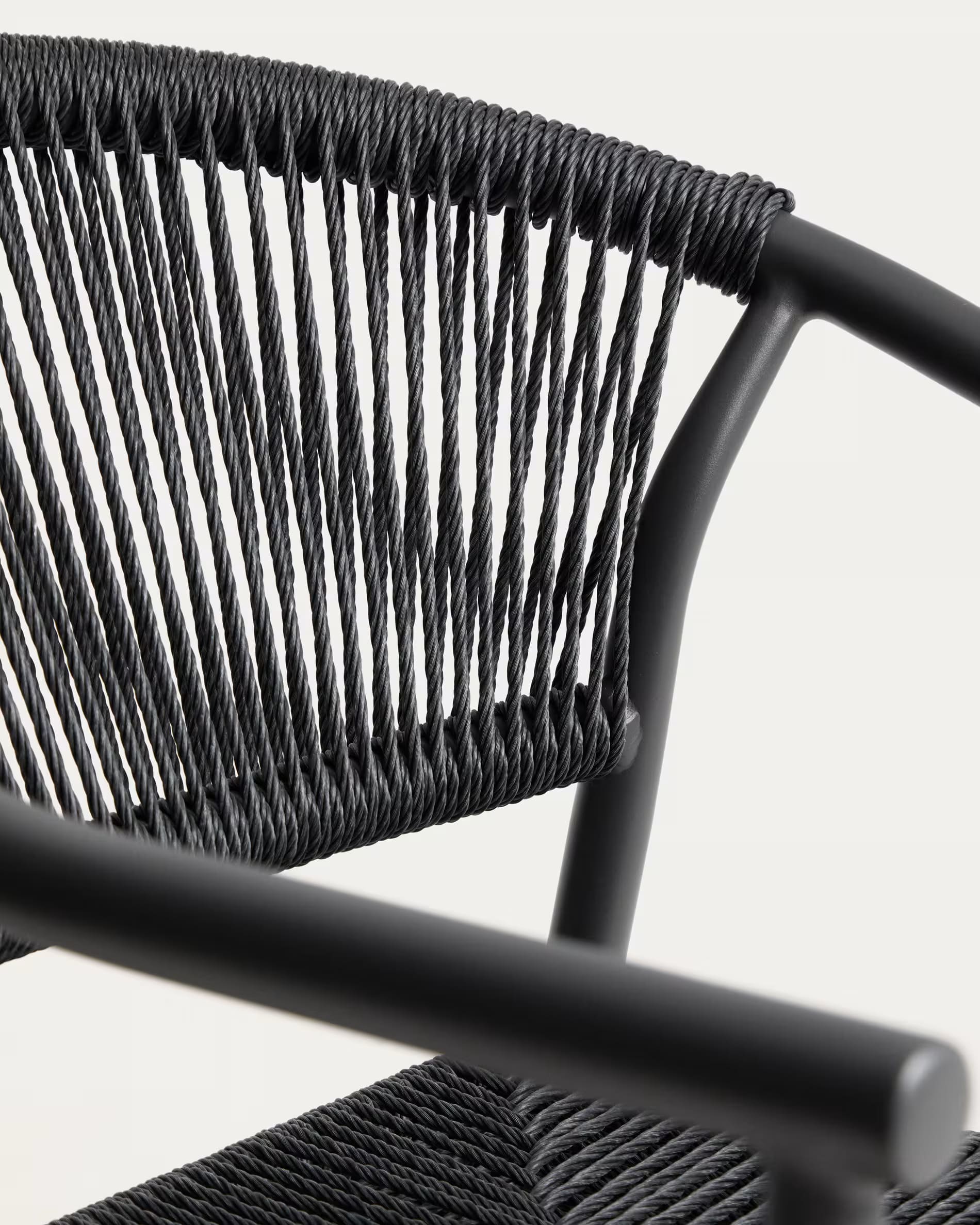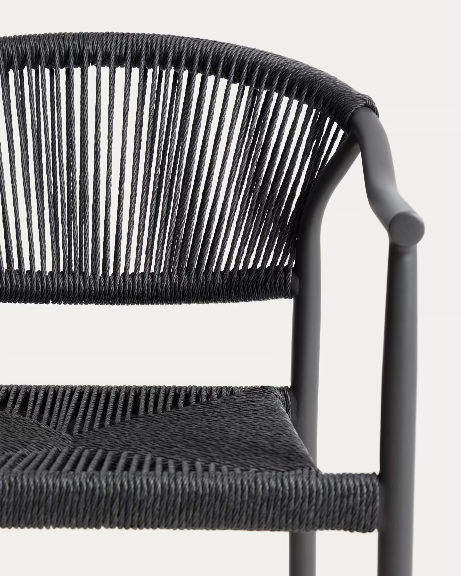 Уличный стул La Forma Livadia Графит — современный стул для террасы, балкона или кафе. Легкий алюминиевый каркас устойчив к влаге, коррозии и ультрафиолету, а плетеное сиденье из синтетической веревки обеспечивает комфорт и вентиляцию. Подходит для использования на улице и в помещении, легко штабелируется.
