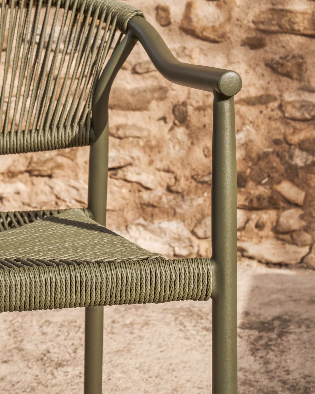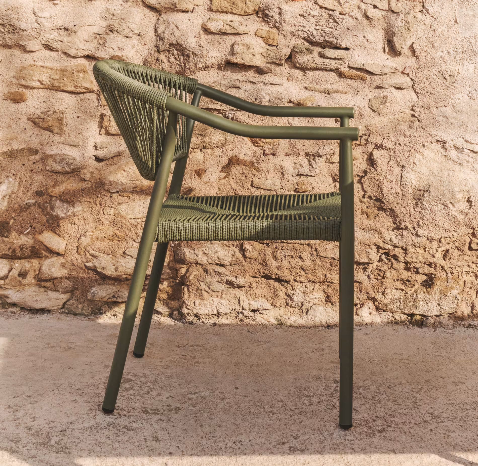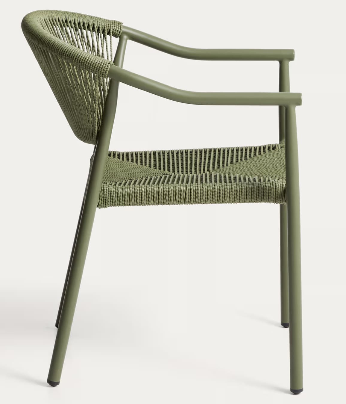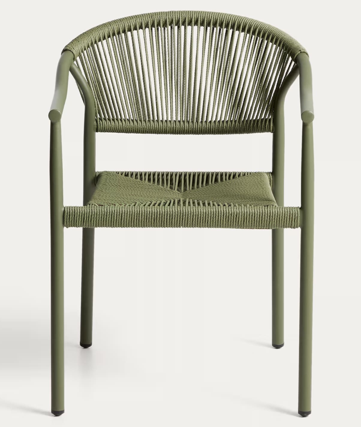 Уличный стул La Forma Livadia Зеленый — современный стул для террасы, балкона или кафе. Легкий алюминиевый каркас устойчив к влаге, коррозии и ультрафиолету, а плетеное сиденье из синтетической веревки обеспечивает комфорт и вентиляцию. Подходит для использования на улице и в помещении, легко штабелируется.
