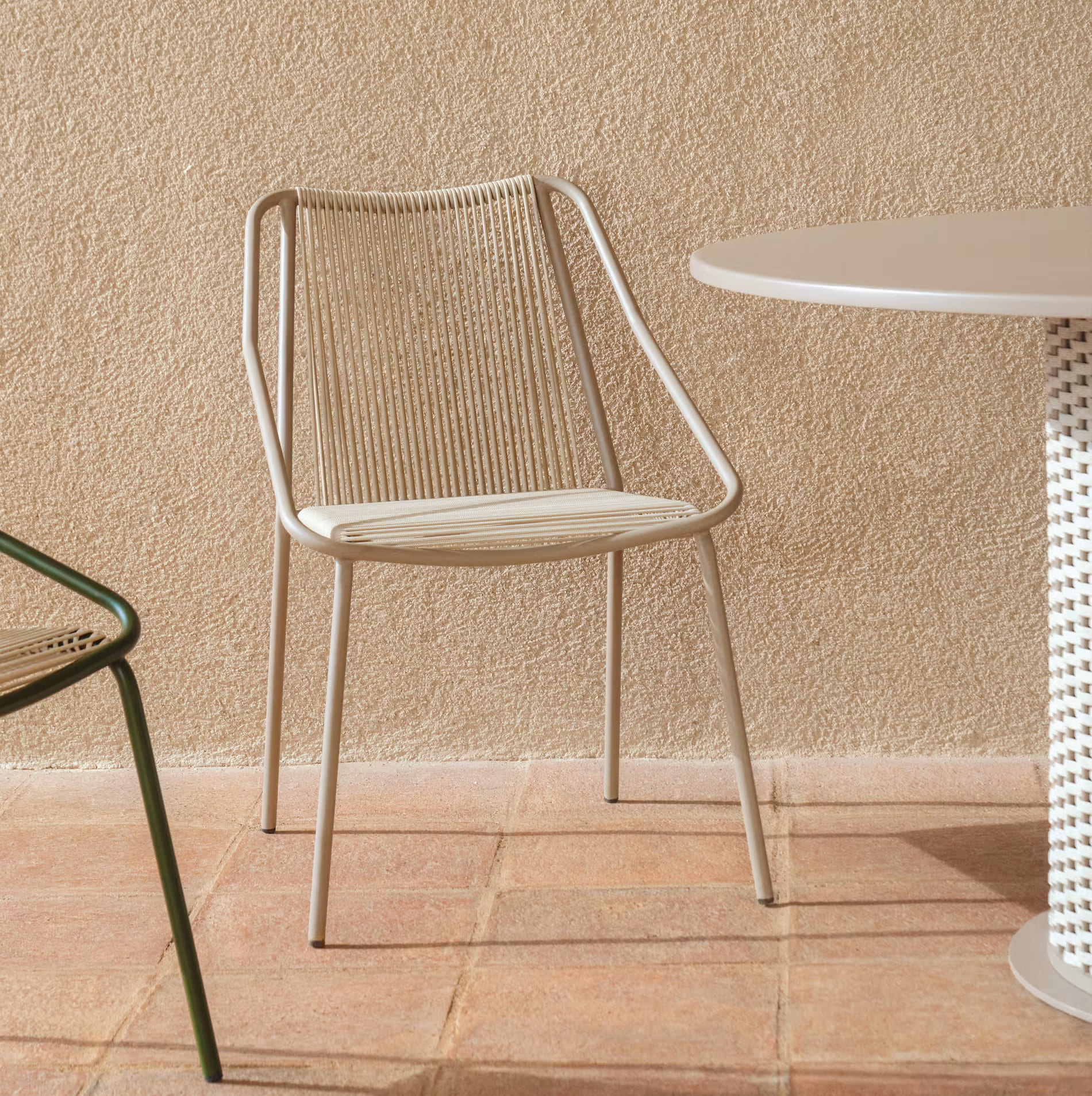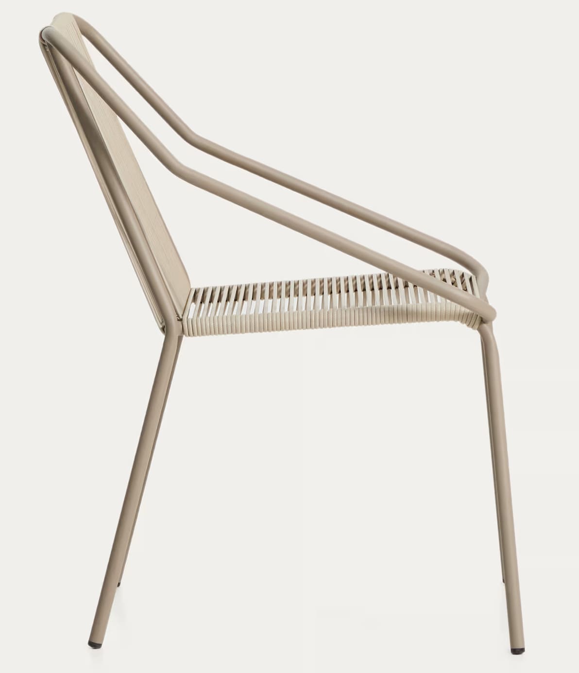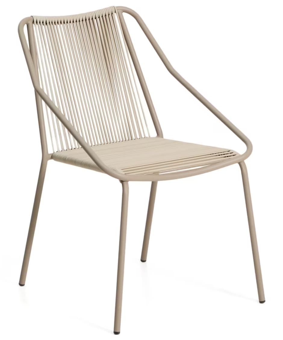 Уличный стул La Forma Zivia Экрю/Taupe — современный стул для террасы, балкона или кафе. Плетеное сиденье из прочного шнура обеспечивает комфорт и вентиляцию, а металлический каркас устойчив к влаге и коррозии. Подходит для использования на улице и в помещении, легко штабелируется.