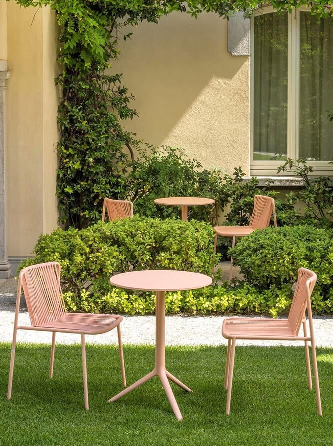 Стул подходит для использования на улице, легко штабелируется и доступен в разных цветах, что делает его универсальным решением для дома и HoReCa.