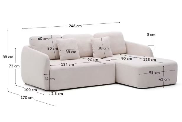 Угловой диван раскладной 3-местный La Forma Laira S00037LG39 Экрю 246 см: