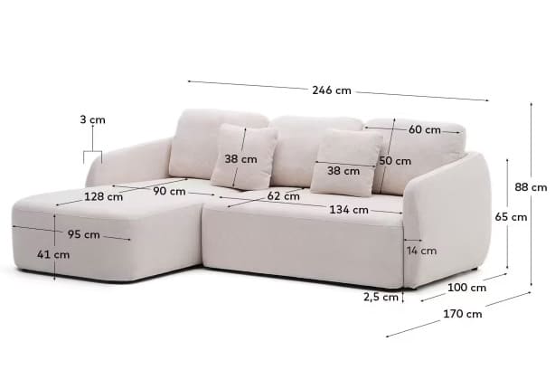 Угловой диван раскладной 3-местный La Forma Laira S00071LG39 Экрю 246 см: