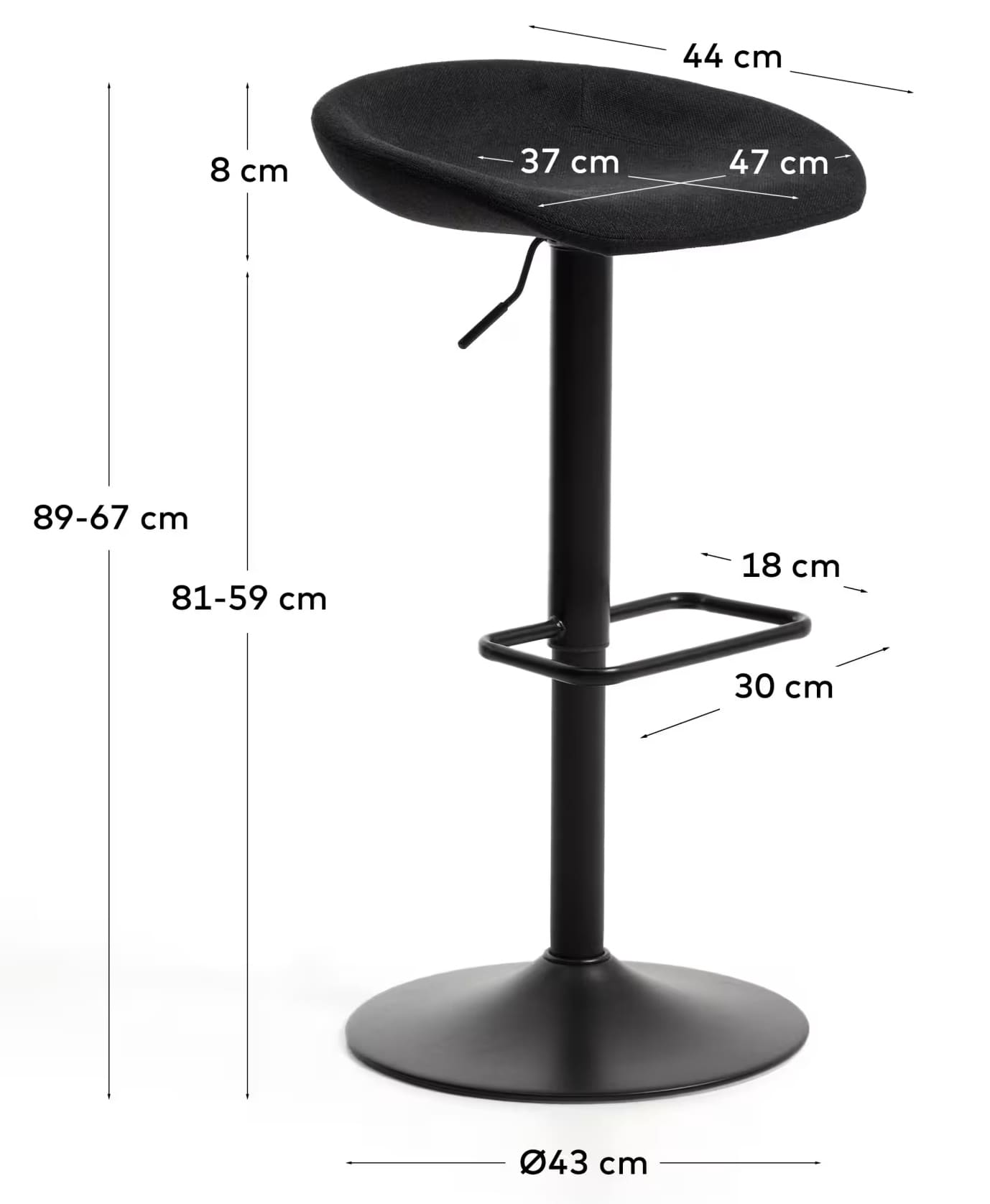 - Регульована висота (67-89 см) - підходить під різні столи та барні стійки.