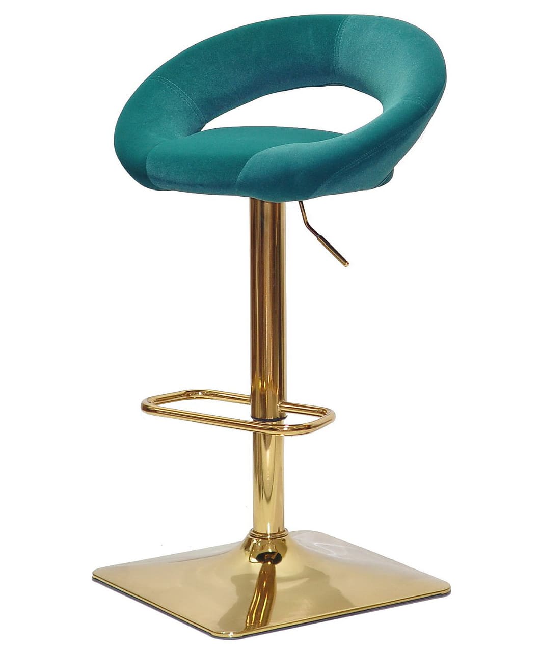 Цей барний стілець з регулюванням висоти оснащений поворотним сидінням, що обертається на 360°, забезпечуючи максимальний комфорт при використанні. Металева ніжка золотого кольору гарантує міцність та стійкість, а зручна підніжка робить посадку ще комфортнішою.