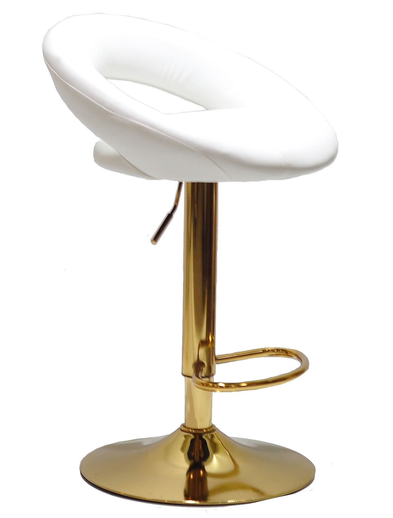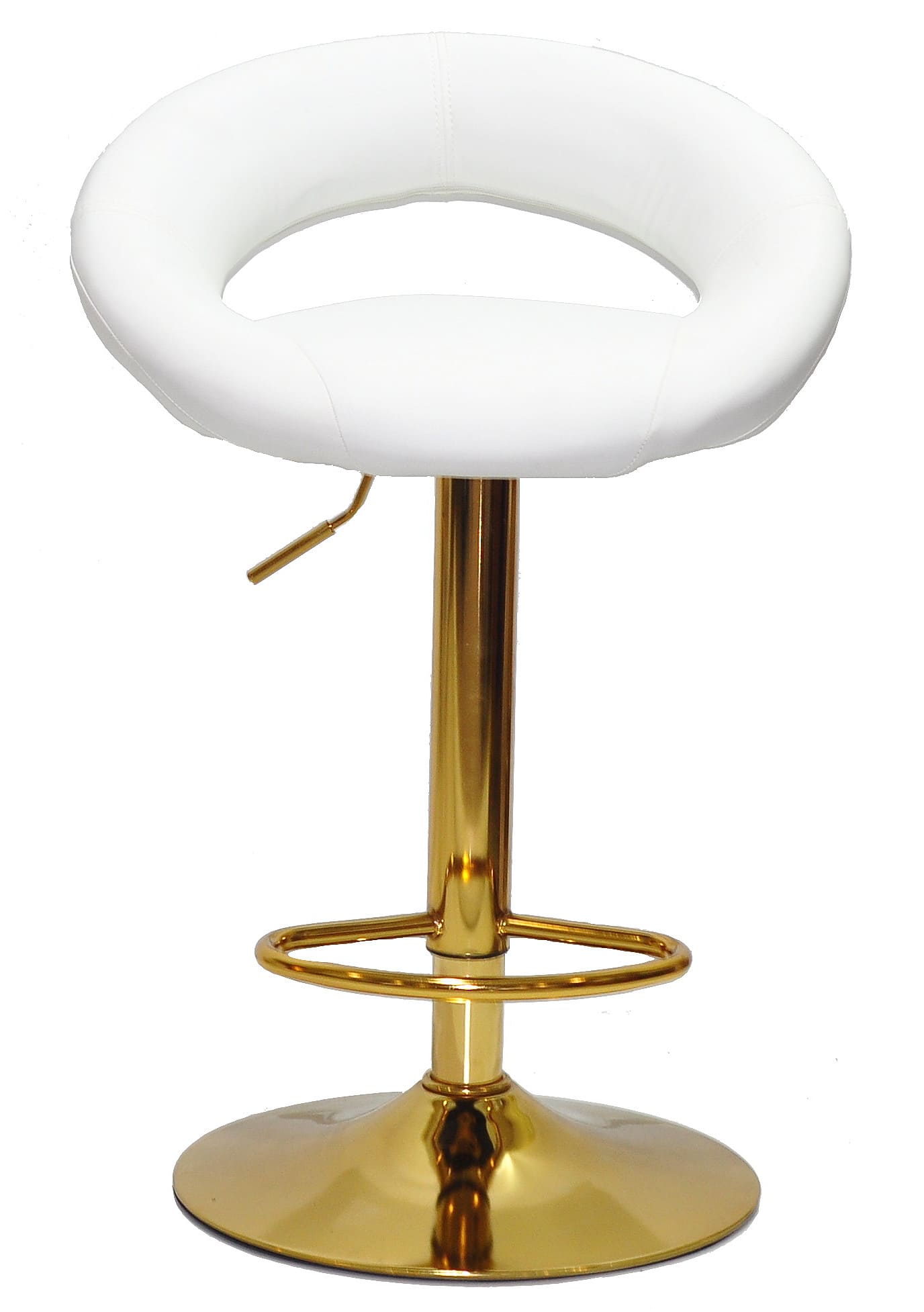 Цей барний стілець з регулюванням висоти оснащений поворотним сидінням, що обертається на 360°, забезпечуючи максимальний комфорт при використанні. Металева ніжка золотого кольору гарантує міцність та стійкість, а зручна підніжка робить посадку ще комфортнішою.