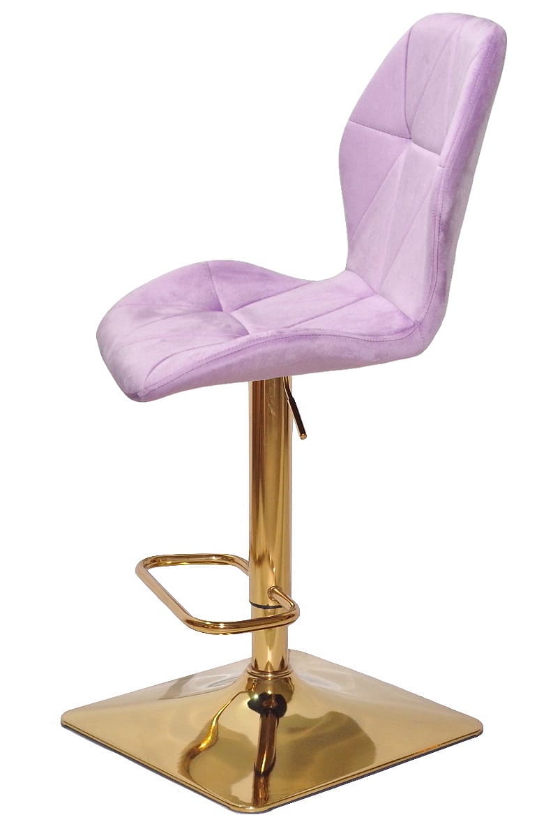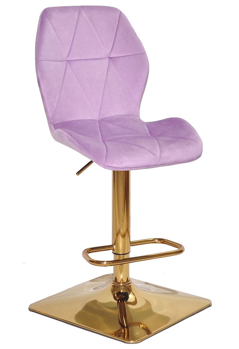 Сидіння та спинка барного стільця оббиті м’яким ліловим оксамитом, який приємний на дотик і надає інтер’єру затишку та елегантності. Ергономічна форма спинки забезпечує комфорт навіть під час тривалого сидіння, що особливо важливо для щоденного використання.