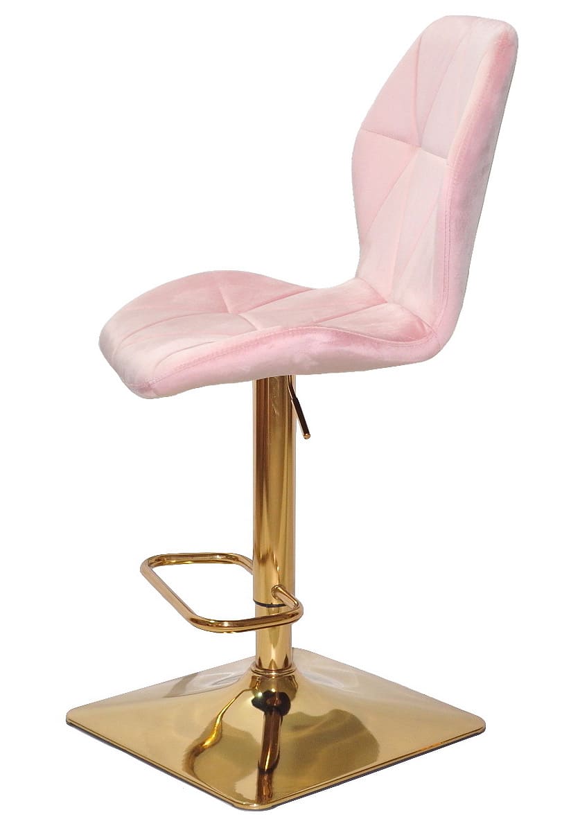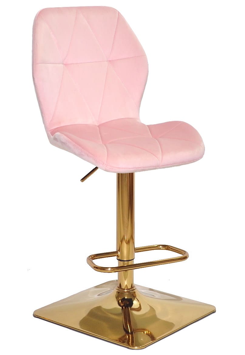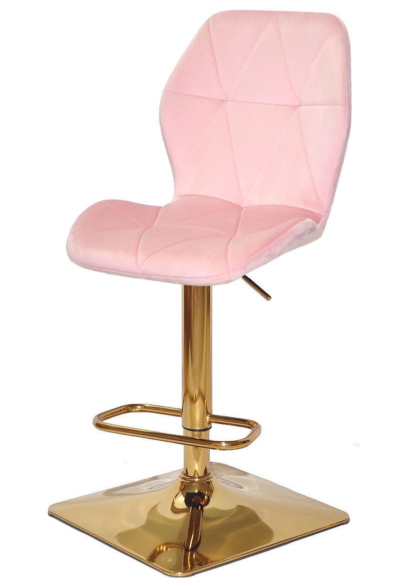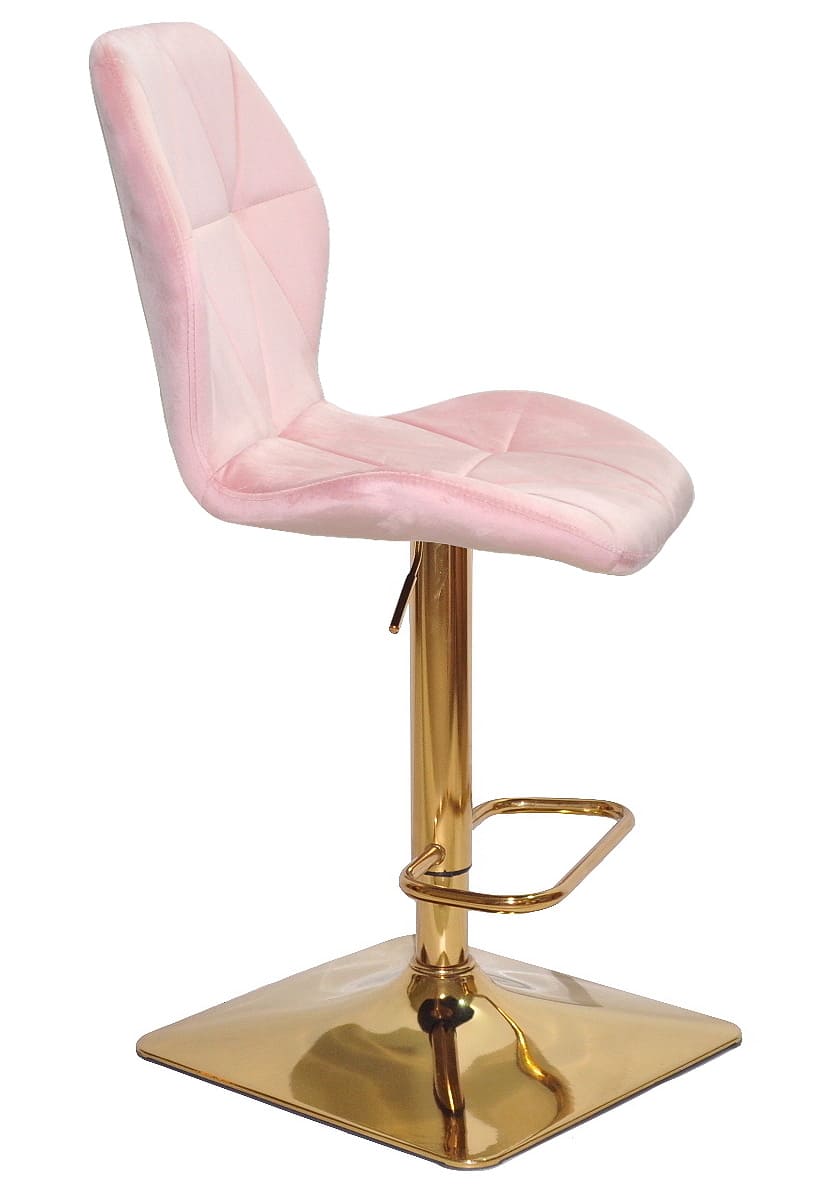 Сидіння та спинка барного стільця оббиті м’яким рожевим оксамитом, який приємний на дотик і надає інтер’єру затишку та елегантності. Ергономічна форма спинки забезпечує комфорт навіть під час тривалого сидіння, що особливо важливо для щоденного використання.
