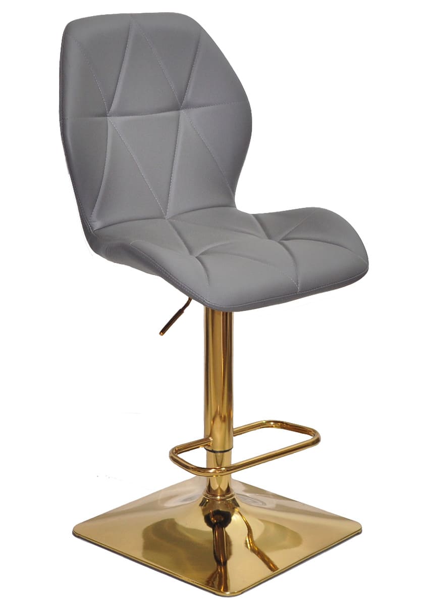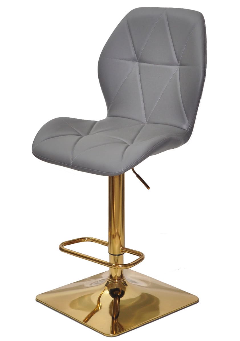 Барний стілець оснащений поворотним механізмом і регулюванням висоти, завдяки чому його зручно використовувати з барними стійками та кухонними островами різної висоти. Міцна металева база золотого кольору з підніжкою забезпечує стійкість, безпеку та довговічність конструкції.