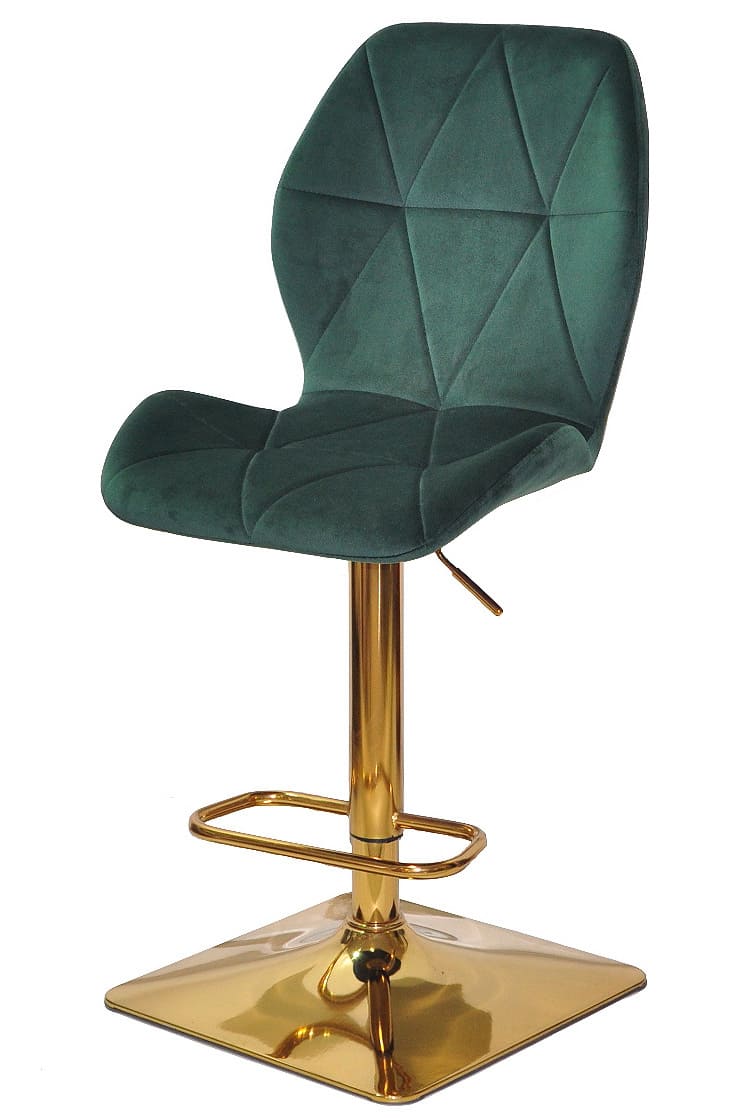 Сидіння та спинка барного стільця оббиті м’яким зеленим оксамитом, який приємний на дотик і надає інтер’єру затишку та елегантності. Ергономічна форма спинки забезпечує комфорт навіть під час тривалого сидіння, що особливо важливо для щоденного використання.