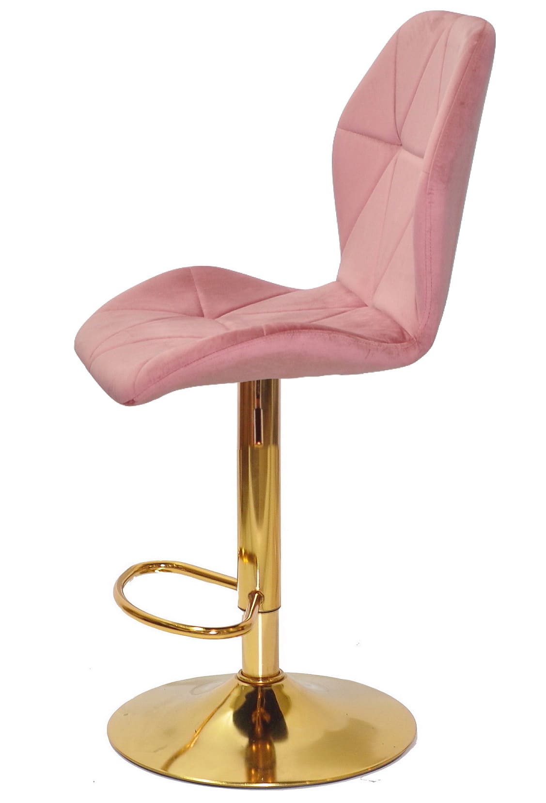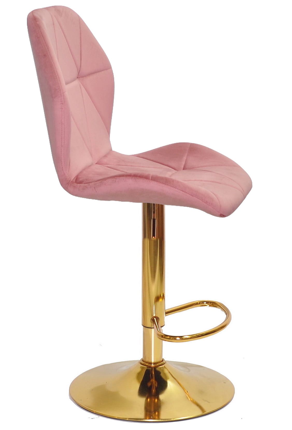 Сидіння та спинка барного стільця оббиті м’яким оксамитом кольору фрез, який приємний на дотик і надає інтер’єру затишку та елегантності. Ергономічна форма спинки забезпечує комфорт навіть під час тривалого сидіння, що особливо важливо для щоденного використання.