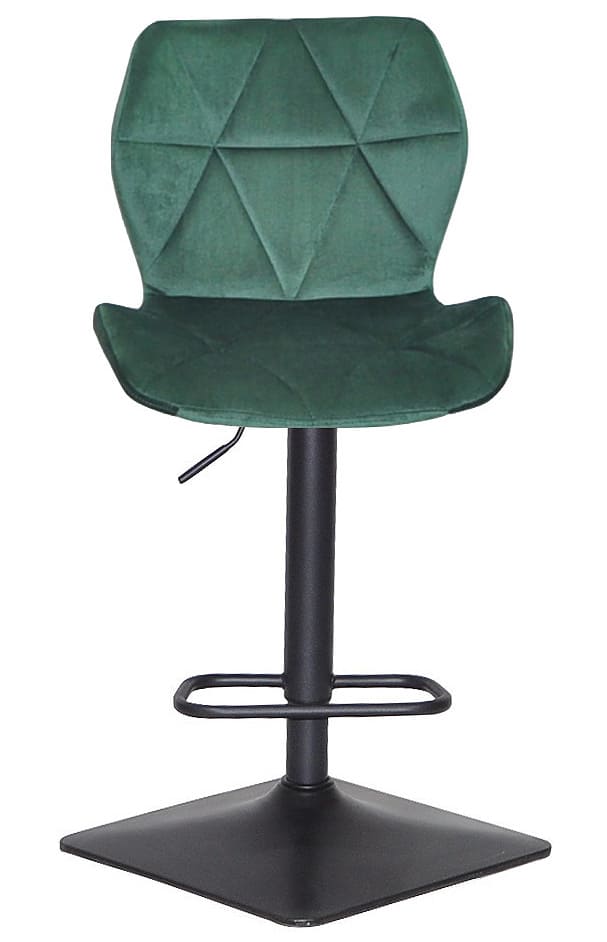 Бархатна оббивка зеленого кольору надає стільцю виразного та преміального вигляду. Такий барний стілець стає не просто функціональним предметом меблів, а акцентним елементом інтер’єру, який підкреслює індивідуальність простору. М’яка текстура бархату приємна на дотик і створює відчуття затишку навіть під час тривалого використання.