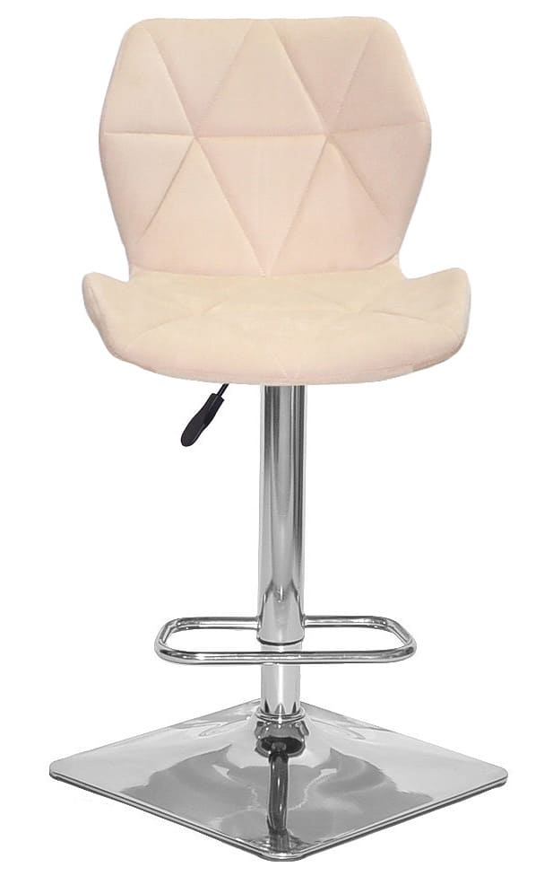 Бархатна оббивка бежевого кольору надає стільцю виразного та преміального вигляду. Такий барний стілець стає не просто функціональним предметом меблів, а акцентним елементом інтер’єру, який підкреслює індивідуальність простору. М’яка текстура бархату приємна на дотик і створює відчуття затишку навіть під час тривалого використання.