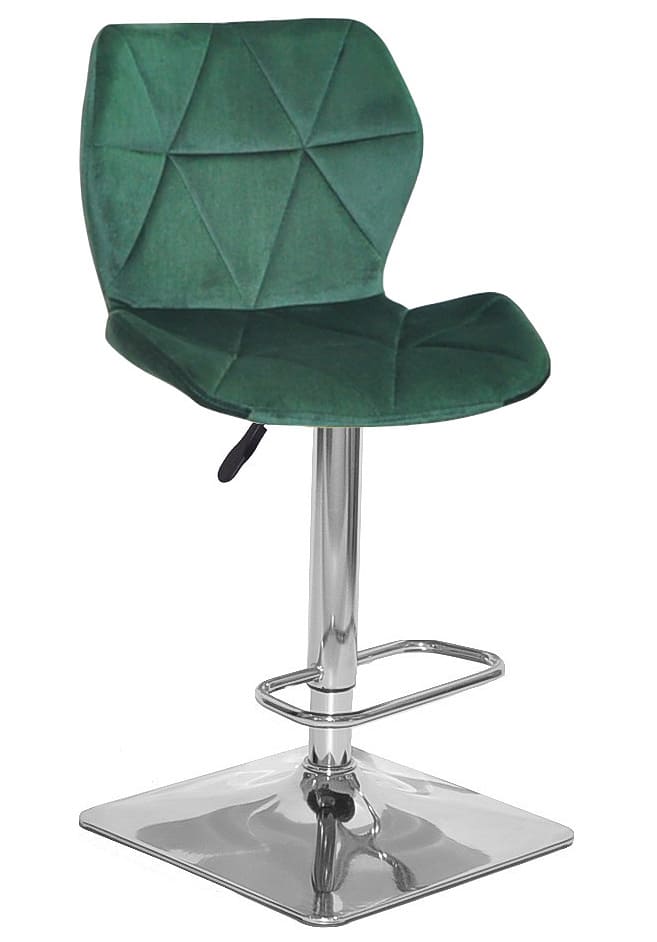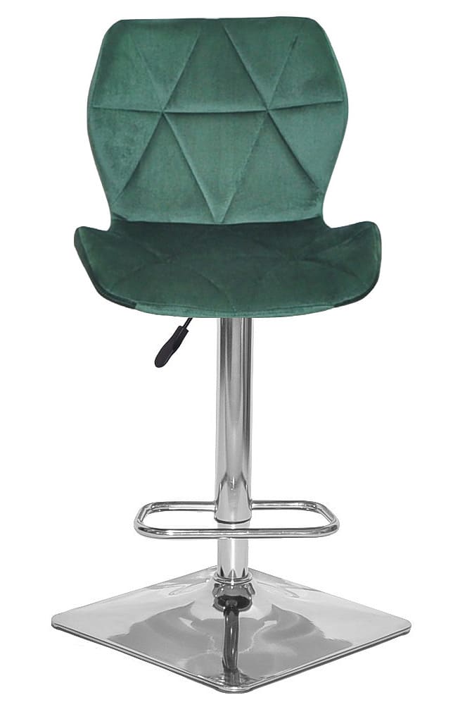 Бархатна оббивка зеленого кольору надає стільцю виразного та преміального вигляду. Такий барний стілець стає не просто функціональним предметом меблів, а акцентним елементом інтер’єру, який підкреслює індивідуальність простору. М’яка текстура бархату приємна на дотик і створює відчуття затишку навіть під час тривалого використання.