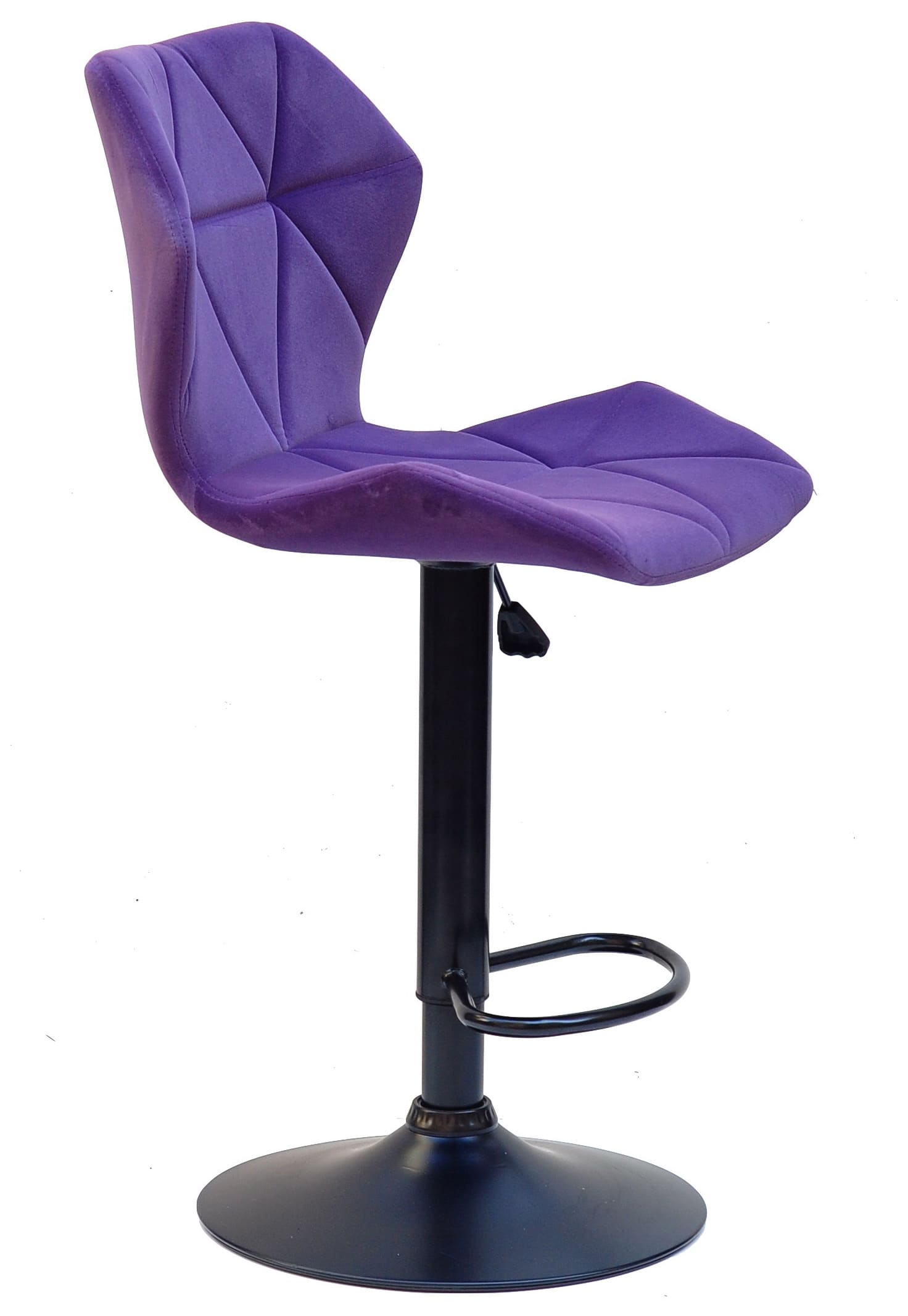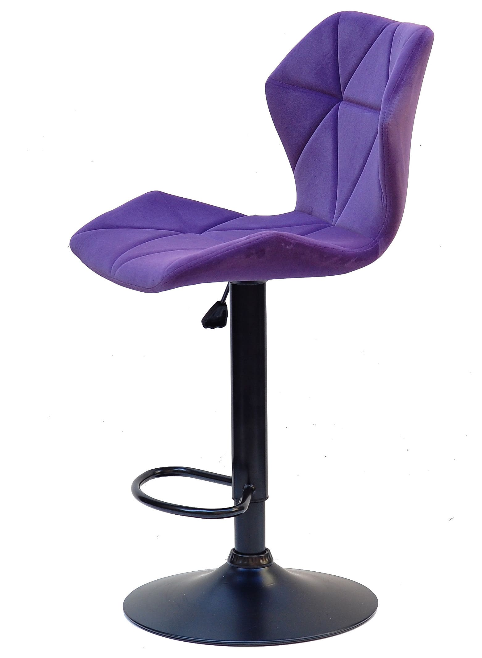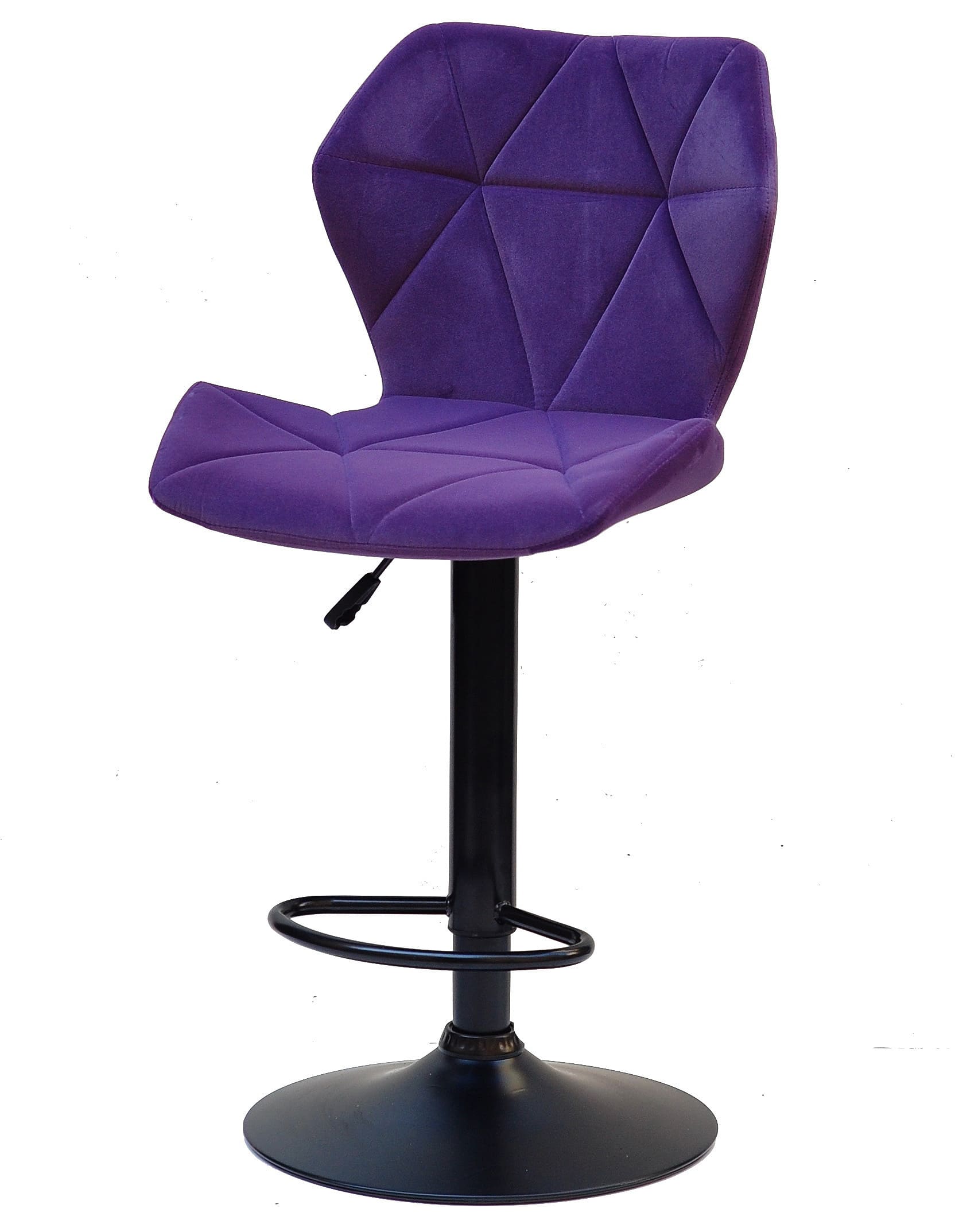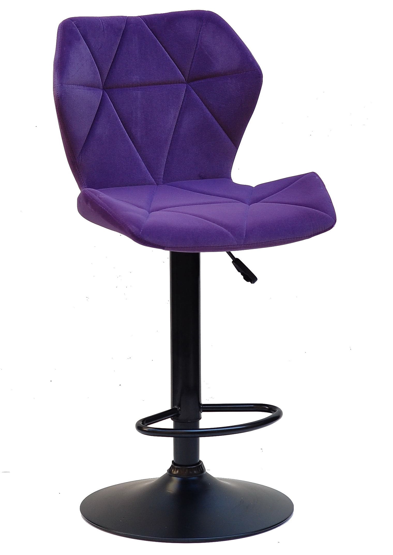 Бархатна оббивка насиченого пурпурного кольору надає стільцю виразного та преміального вигляду. Такий барний стілець стає не просто функціональним предметом меблів, а акцентним елементом інтер’єру, який підкреслює індивідуальність простору. М’яка текстура бархату приємна на дотик і створює відчуття затишку навіть під час тривалого використання.