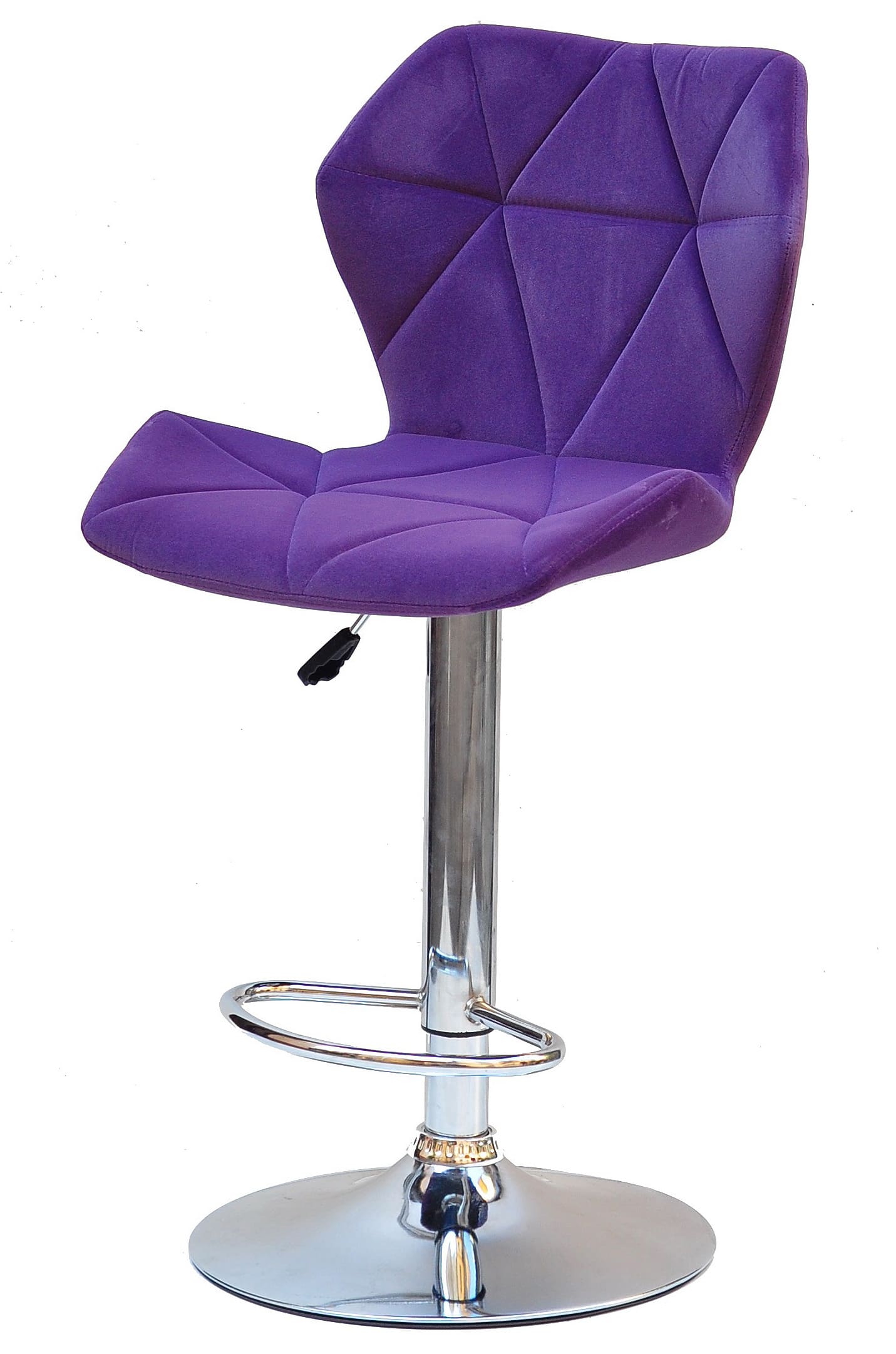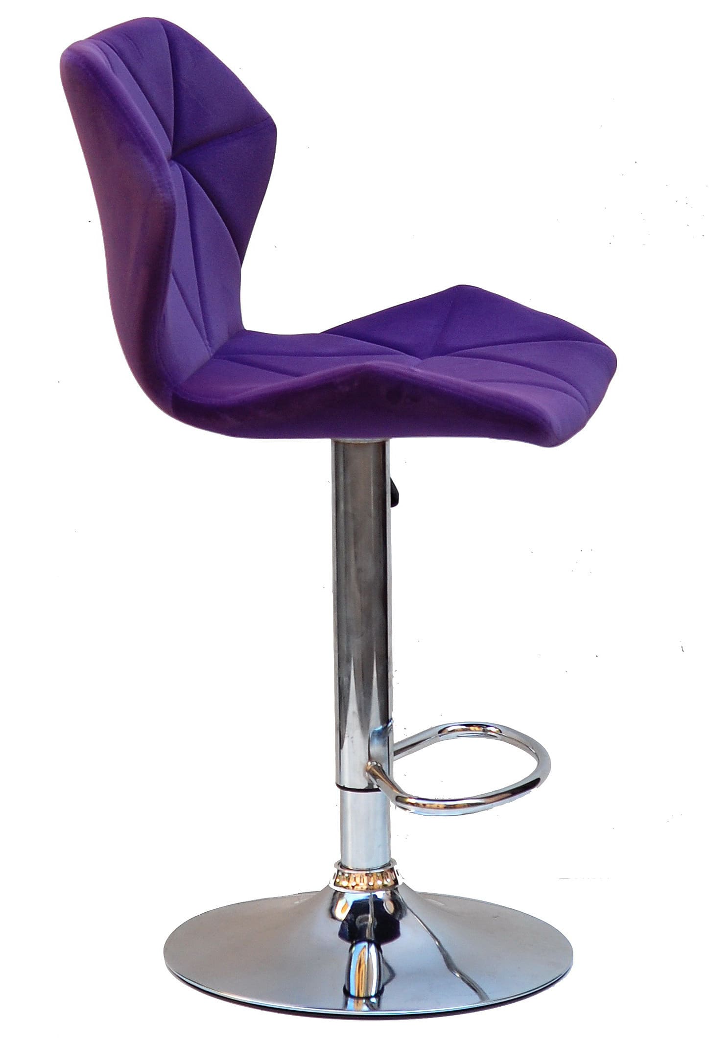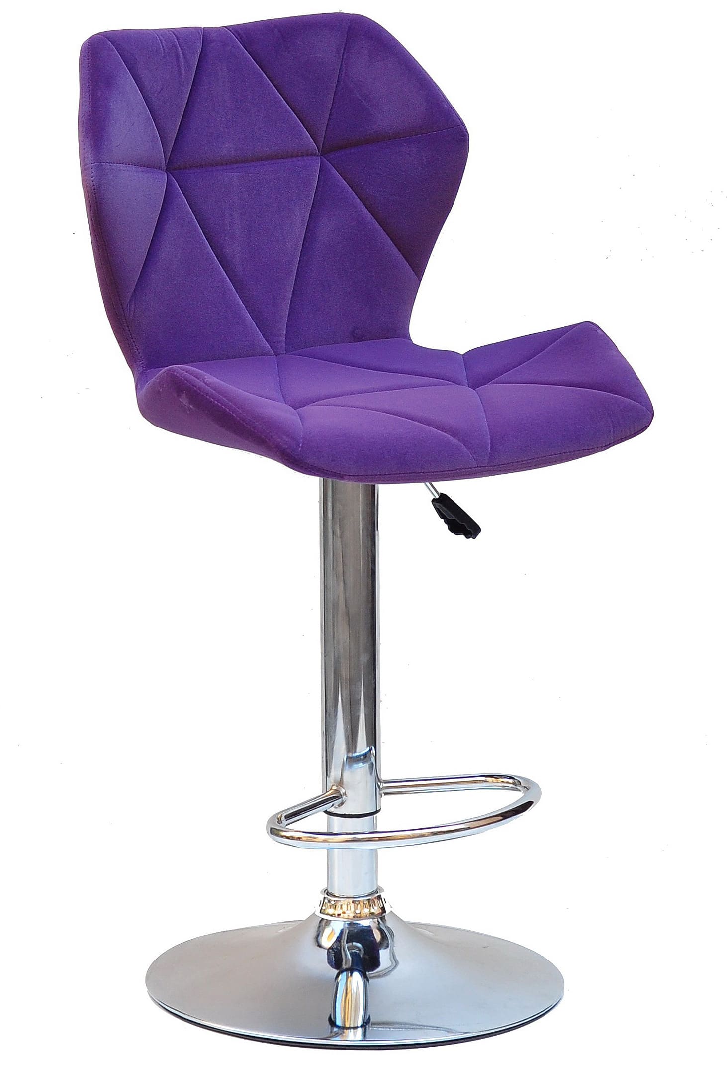 Бархатна оббивка насиченого пурпурного кольору надає стільцю виразного та преміального вигляду. Такий барний стілець стає не просто функціональним предметом меблів, а акцентним елементом інтер’єру, який підкреслює індивідуальність простору. М’яка текстура бархату приємна на дотик і створює відчуття затишку навіть під час тривалого використання.