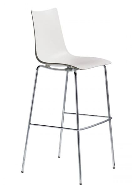 Пластиковый барный стул Zebra Technopolymer Barstool с корпусом из переработанного технополимера от дизайнера Luisa Battaglia. Каркас выполнен из хромированной стали диаметром 16 мм.