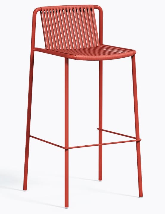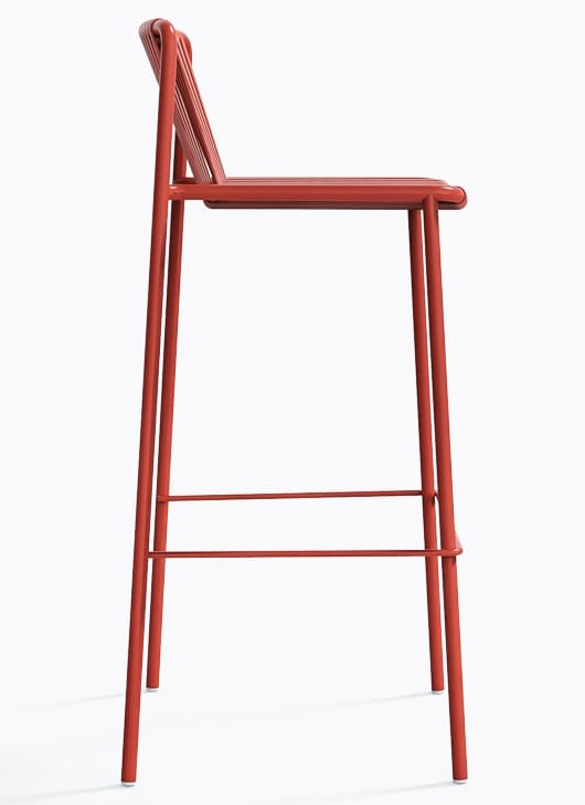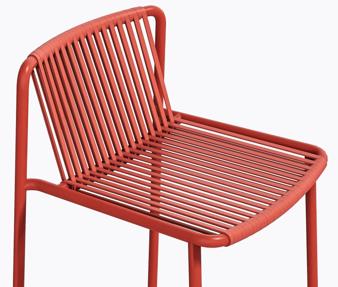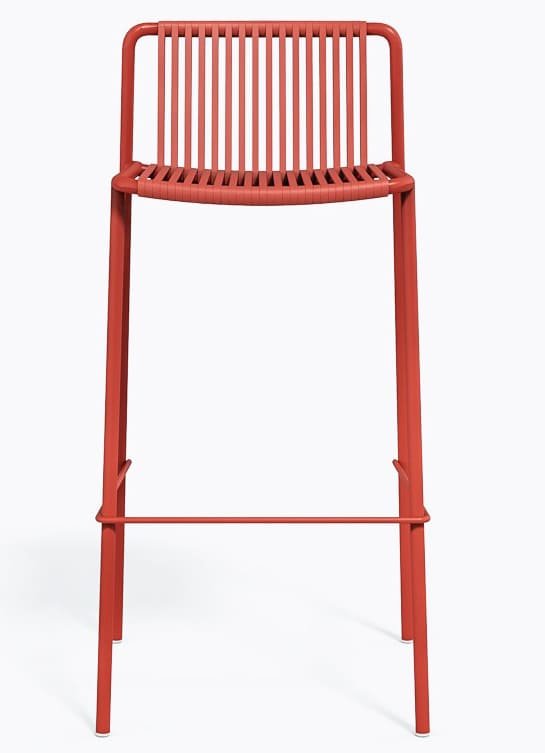 Вуличний барний стілець Pedrali Tribeca 3668 – це дизайнерська модель у стилі 60-х для тераси, бару або ресторану. Каркас виготовлений зі сталі, а сидіння та спинка — з еластичного ПВХ-плетіння з нейлоновим сердечником, стійкого до вологи та сонця.