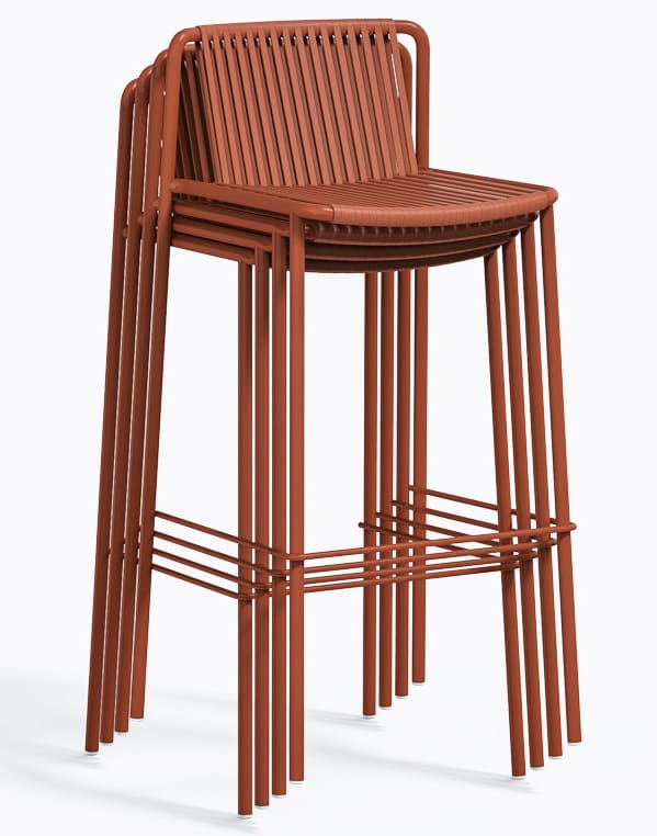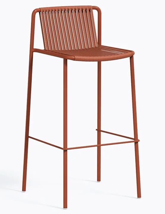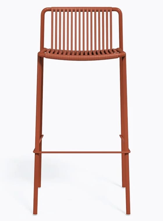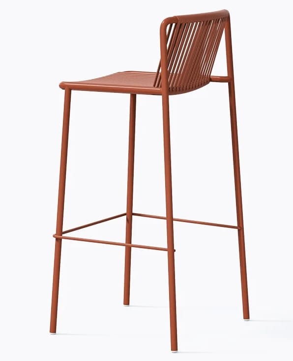 Вуличний барний стілець Pedrali Tribeca 3668 – це дизайнерська модель у стилі 60-х для тераси, бару або ресторану. Каркас виготовлений зі сталі, а сидіння та спинка — з еластичного ПВХ-плетіння з нейлоновим сердечником, стійкого до вологи та сонця.