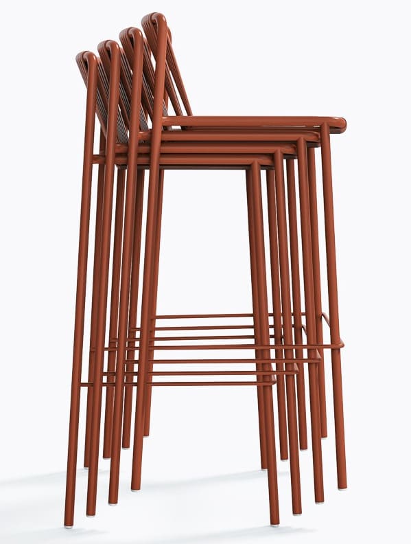 Стілець підходить для використання на вулиці, штабелюється та доступний у різних кольорах і висотах.