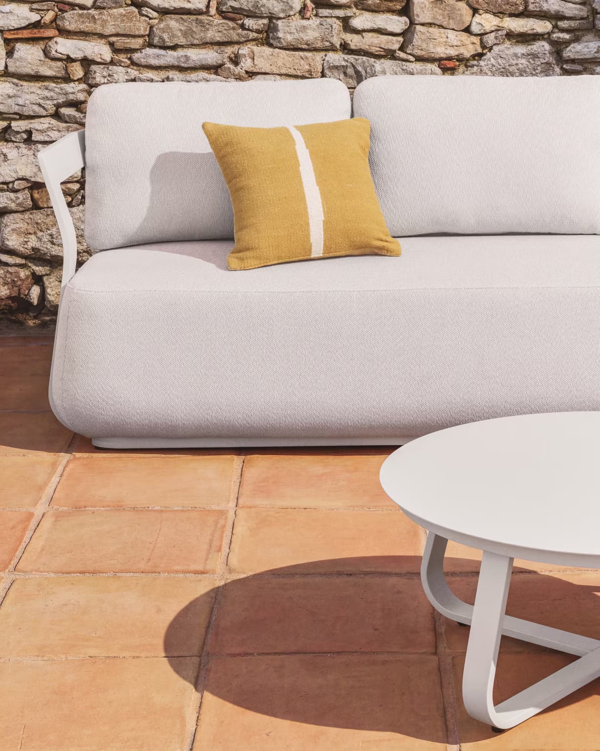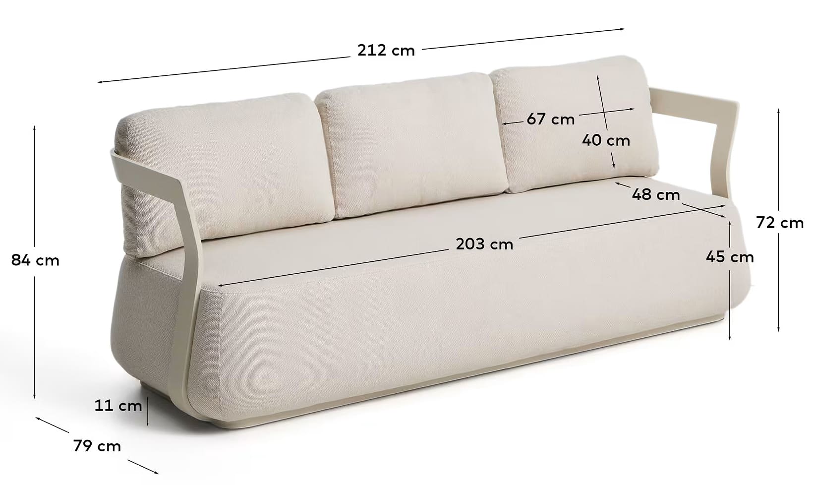 Вуличний 3-місний диван Kave Home Tamaris Екрю 217 см - елегантне та сучасне рішення, яке поєднує легкість конструкції, комфорт та мінімалістичну естетику, ідеально доповнюючи простір тераси, саду чи стильного інтер'єру будинку.