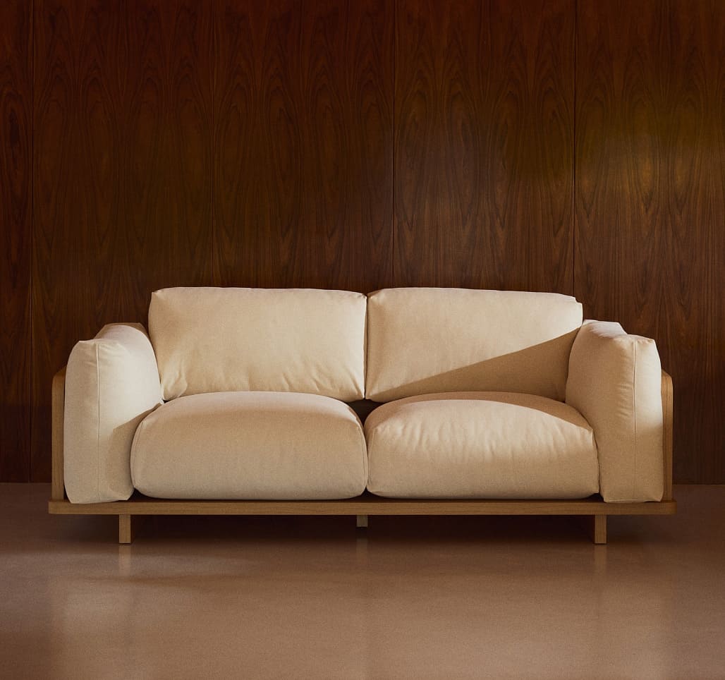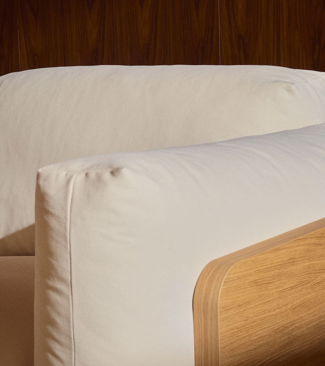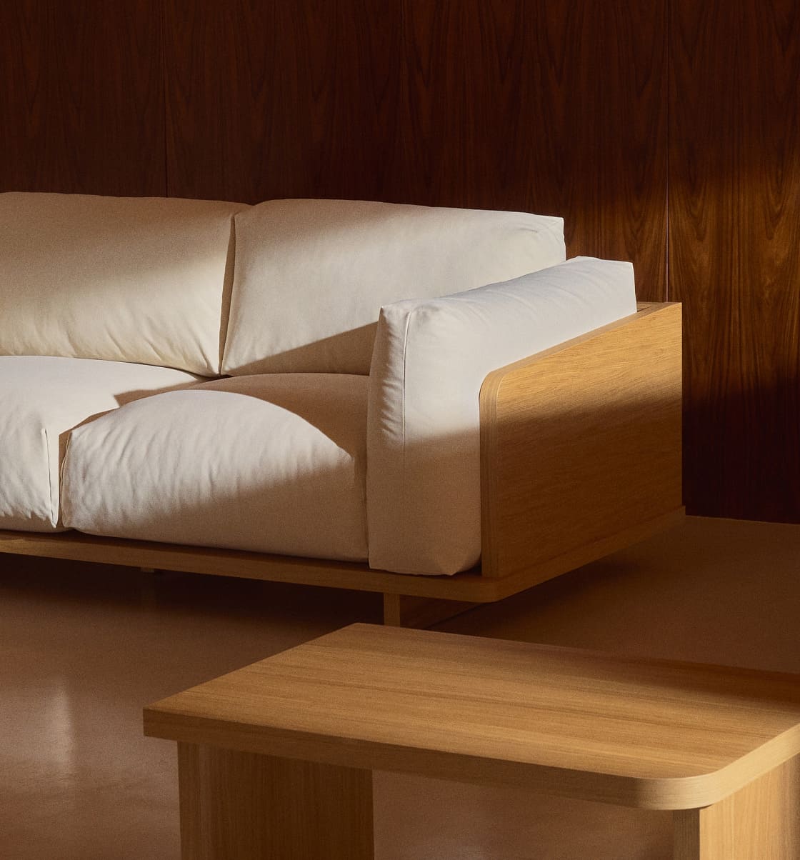 Диван OAQ - стане головним героєм вашої вітальні: його дизайн, облицьований шпоном дуба, поєднує в собі вигнуті та прямі лінії, які піднімають його на більш високий рівень, а набивка з ефектом пір'я покликана гарантувати більший комфорт та гостинність.