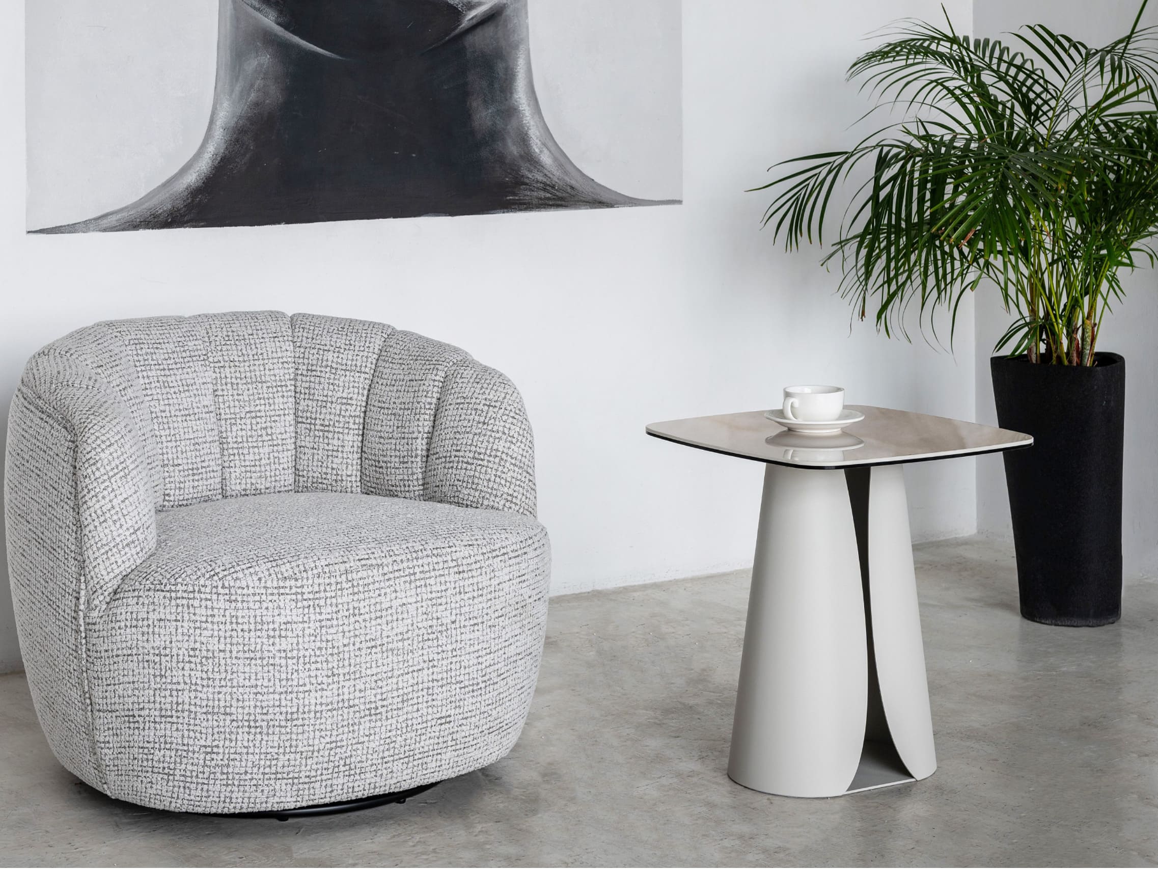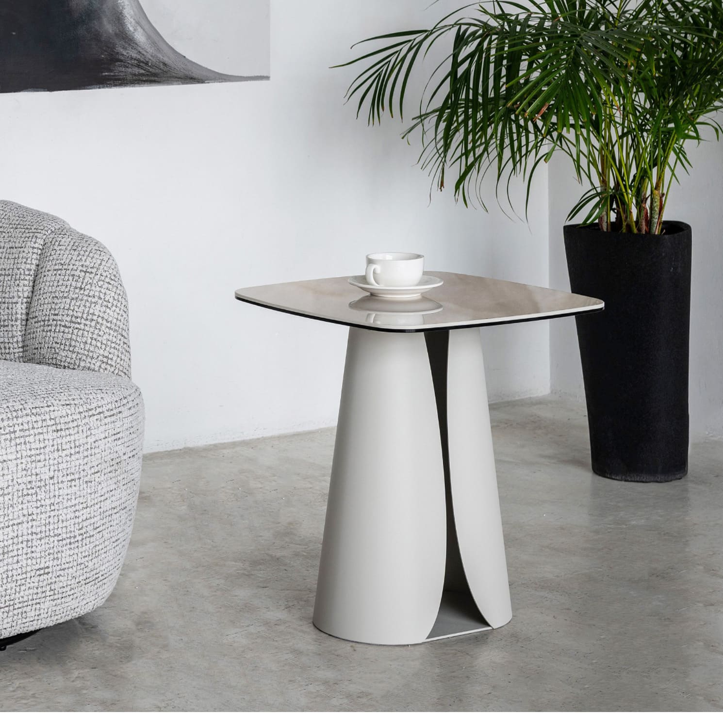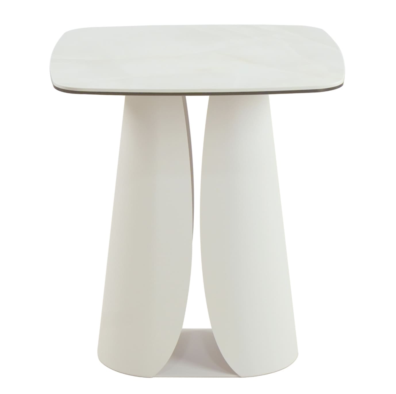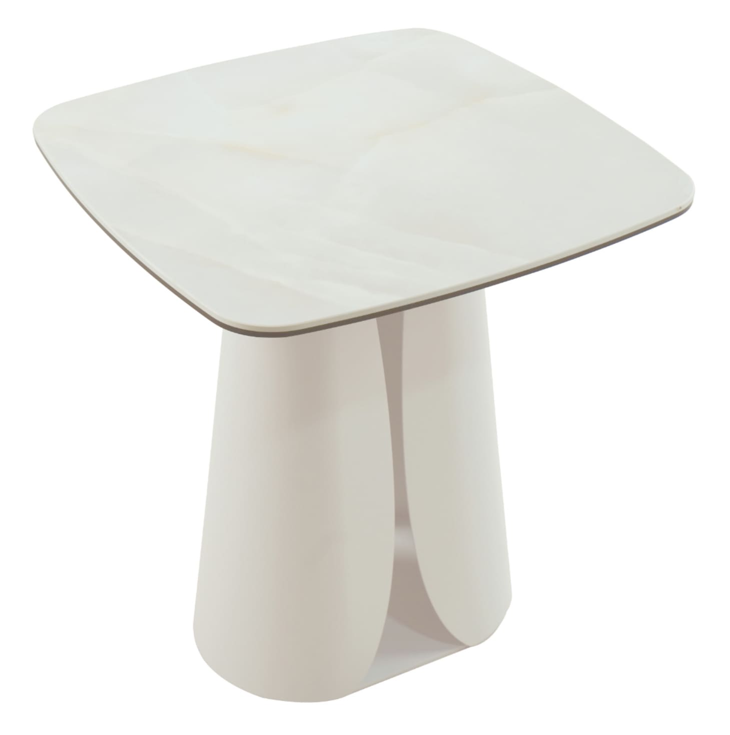 Кавовий стіл «Лунаріо» створений, щоб стати витонченим акцентом у вітальні чи зоні відпочинку. Його квадратна стільниця з глянцевої кераміки у відтінку айворі онікс зачаровує природним малюнком каменю та глибоким блиском поверхні.