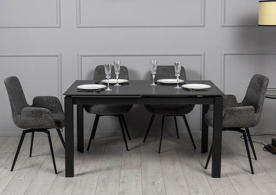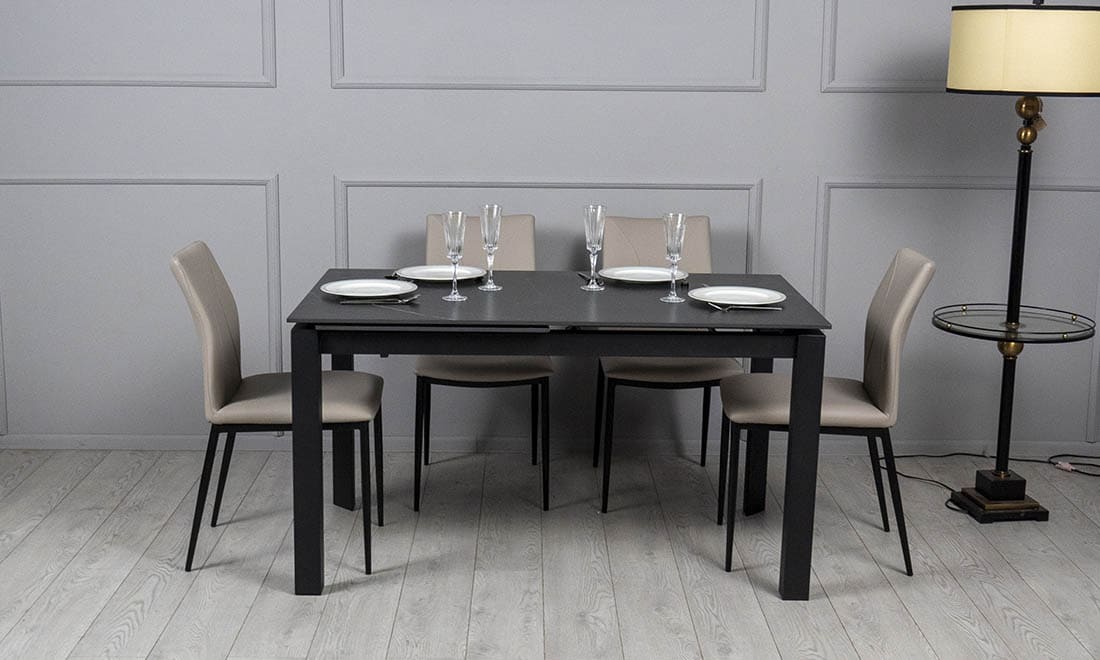 Керамічний стіл розкладний обідній Prestol Ларс Чорний матовий 80х140 (200) см