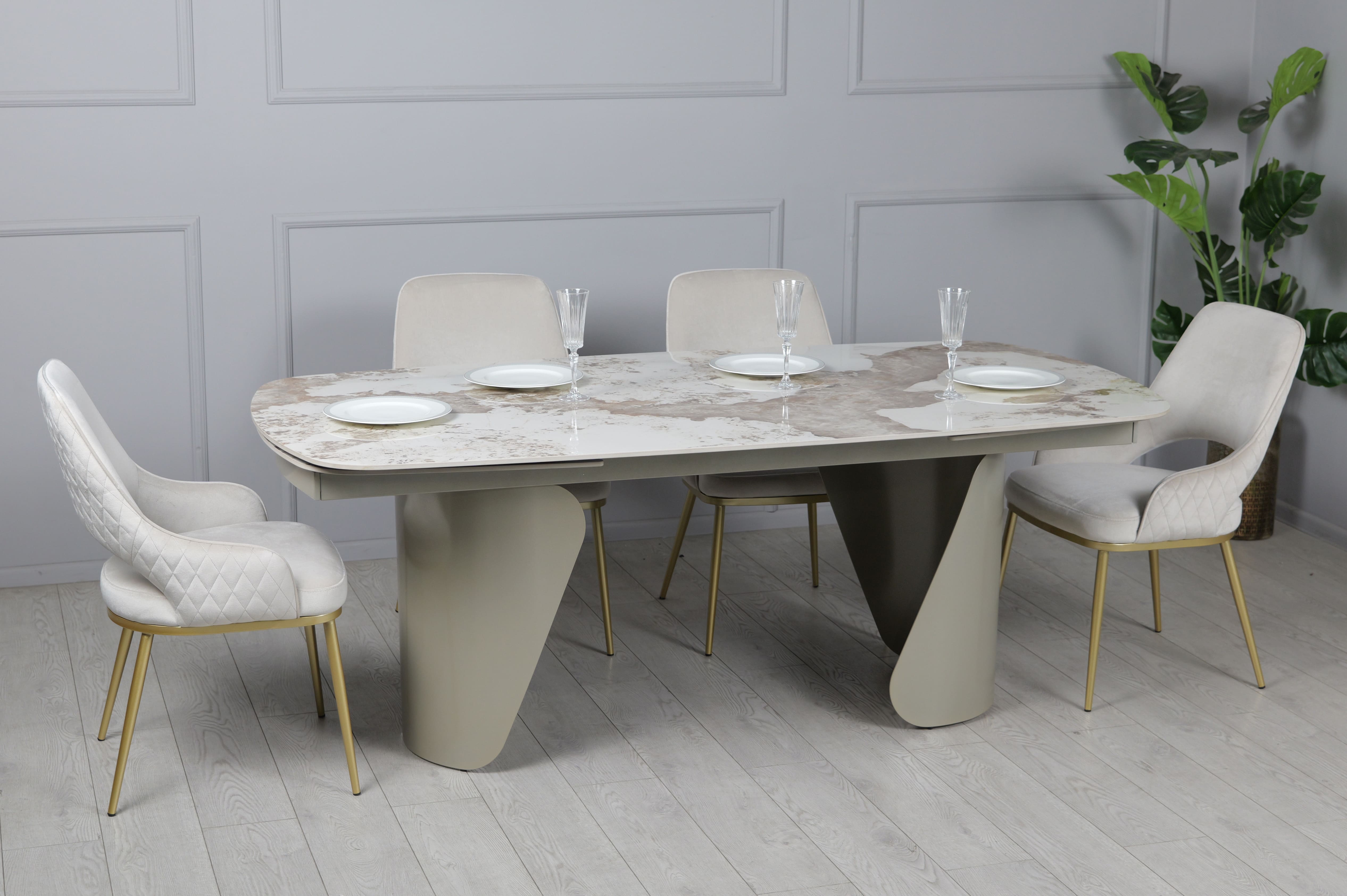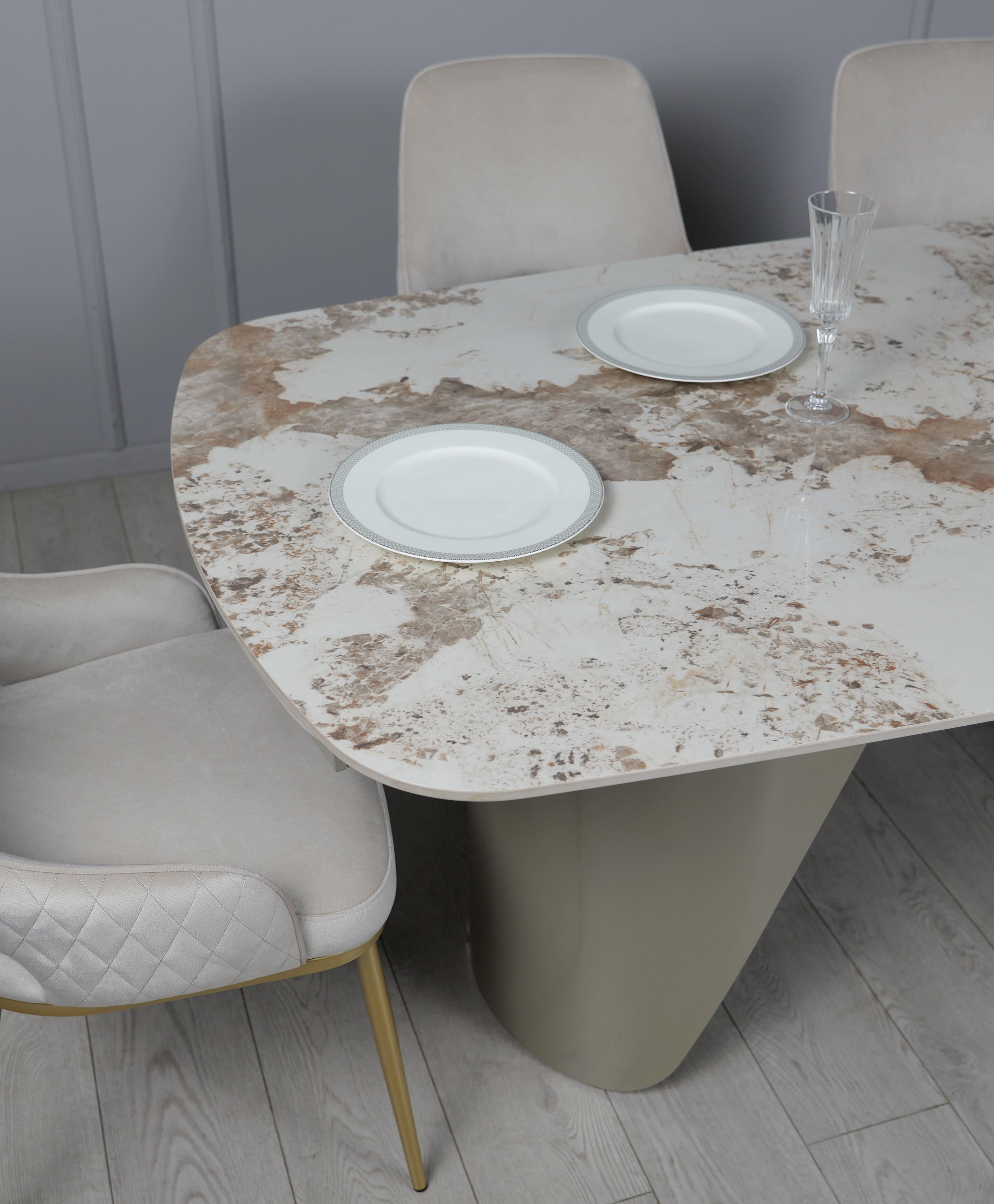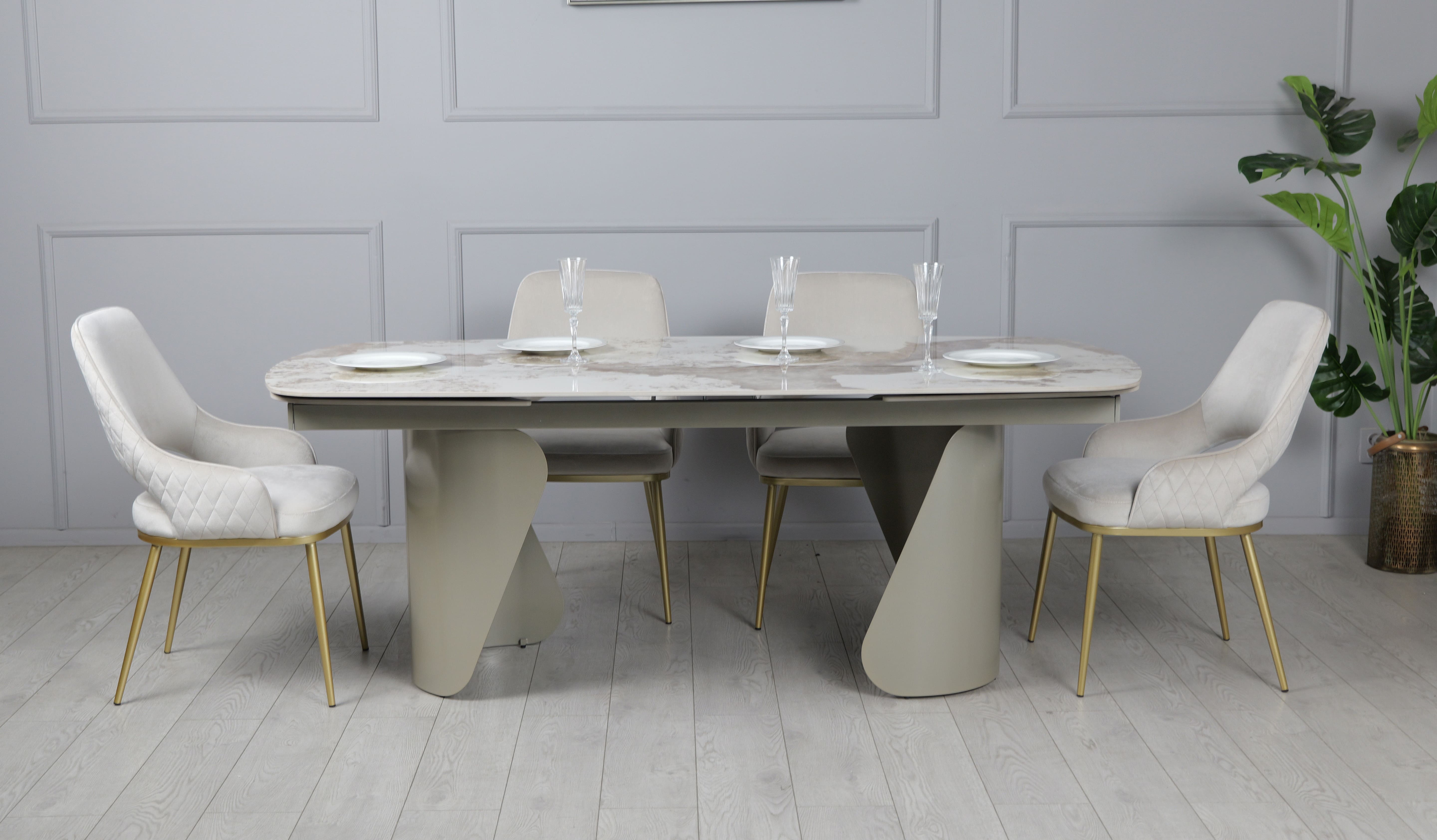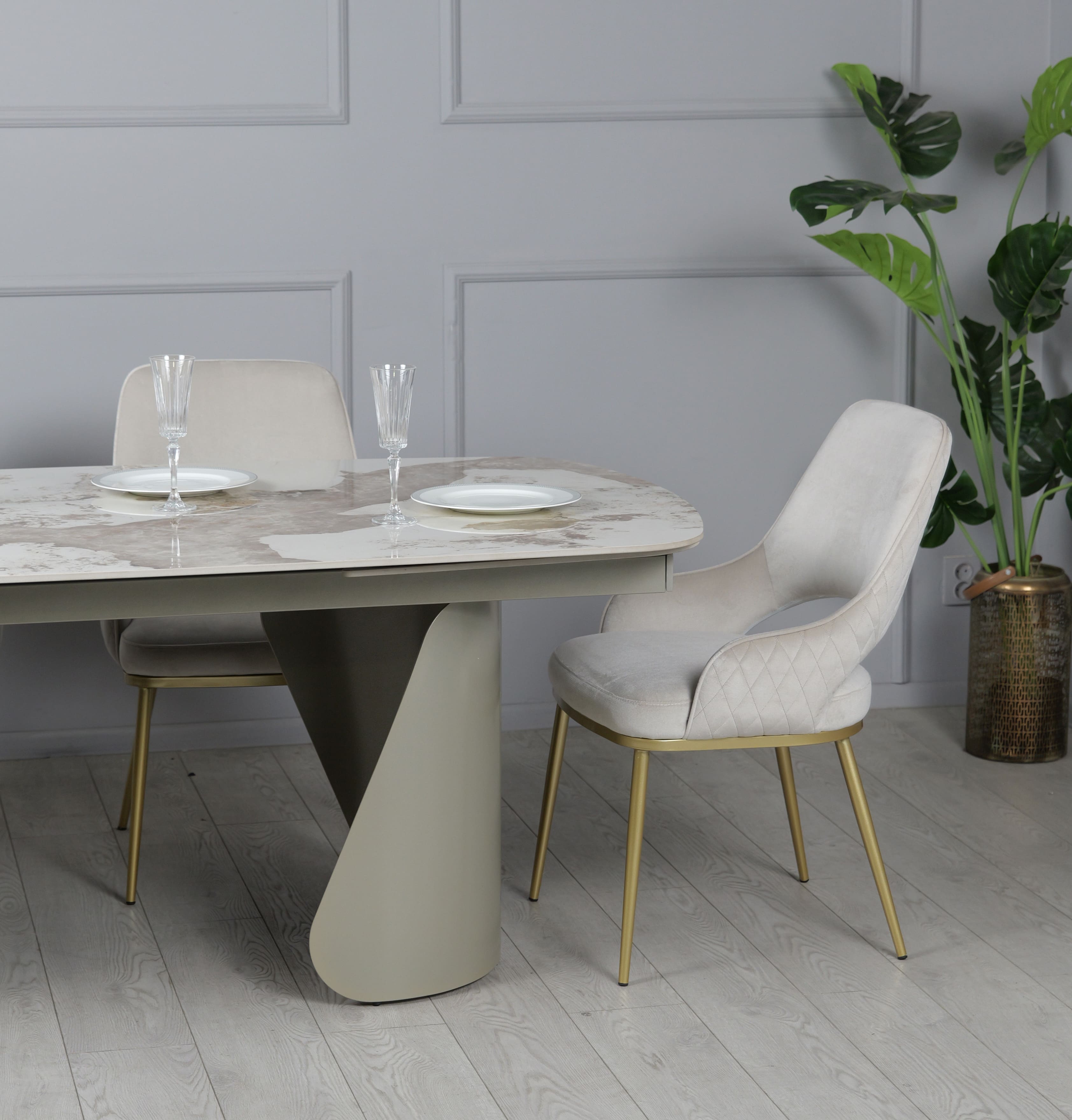 - Металеві ніжки кольору шампань забезпечують стійкість та стильний акцент. Каркас стійкий до навантажень та не розхитується з часом.