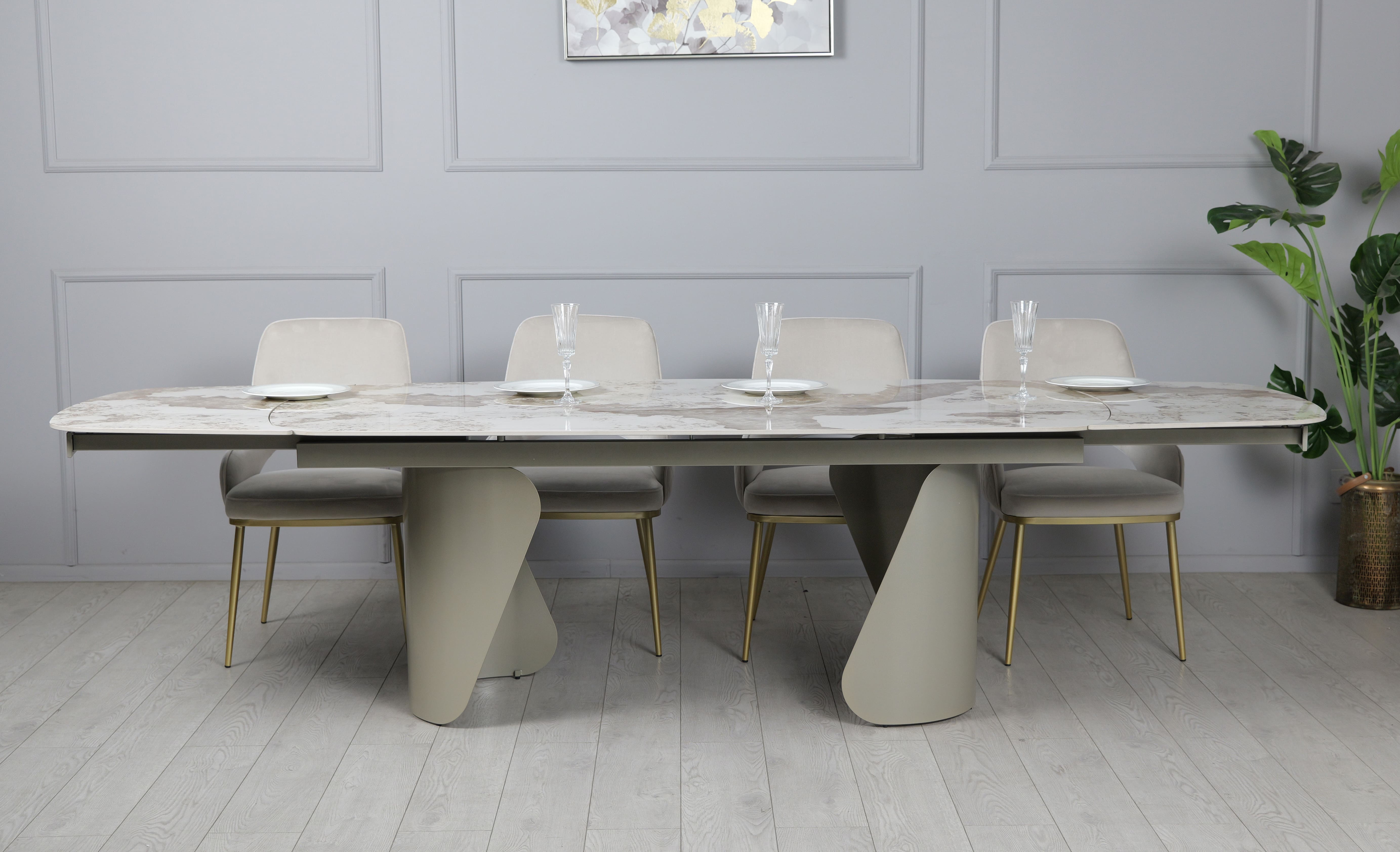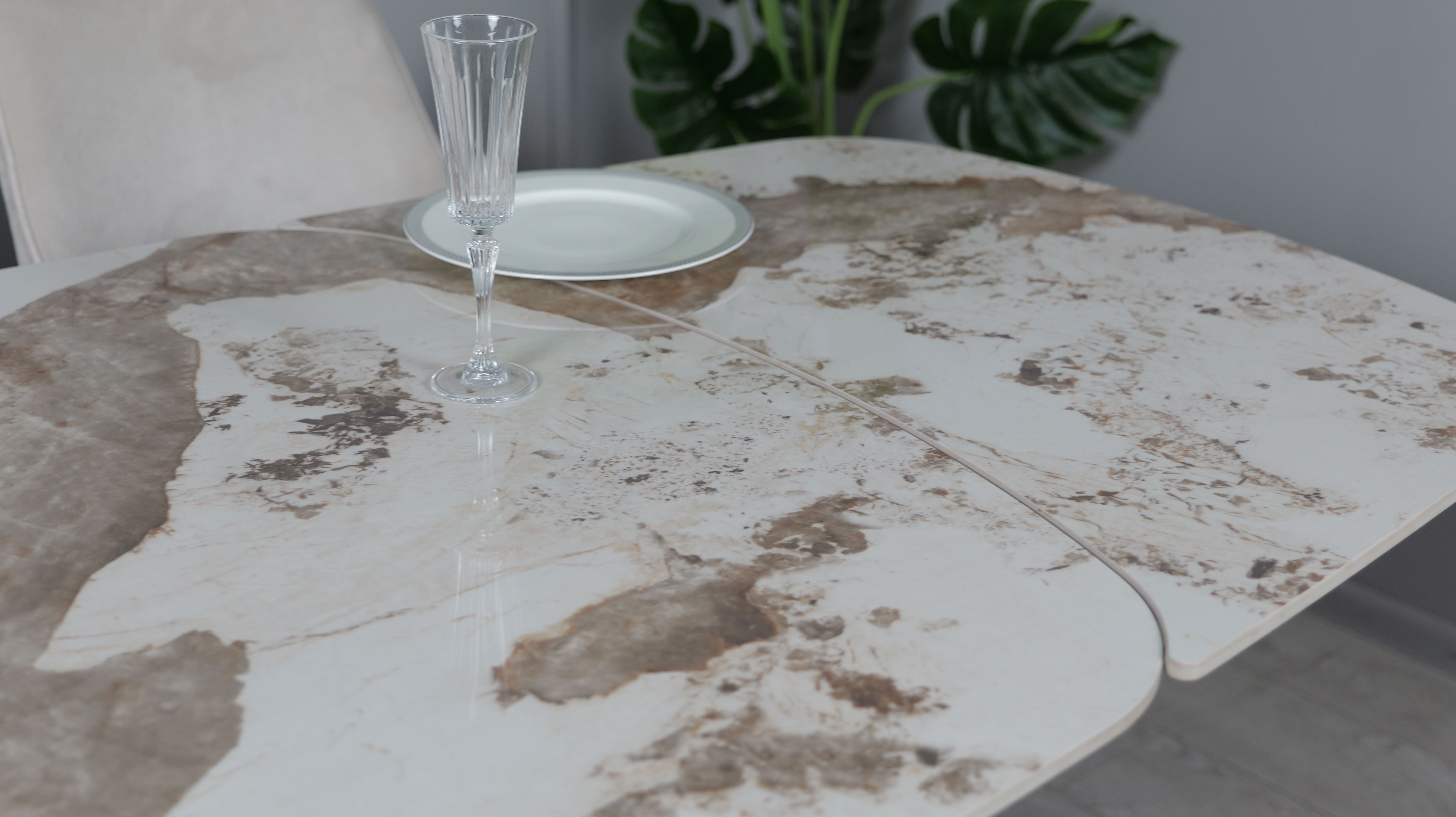 Стіл трансформується всього за кілька секунд, завдяки боковим вставкам. Це дозволяє швидко змінити кількість місць – від 6 до 10 осіб. Незамінне рішення для сімейних вечерь, свят чи прийомів гостей.