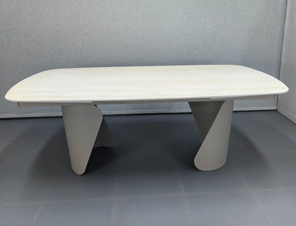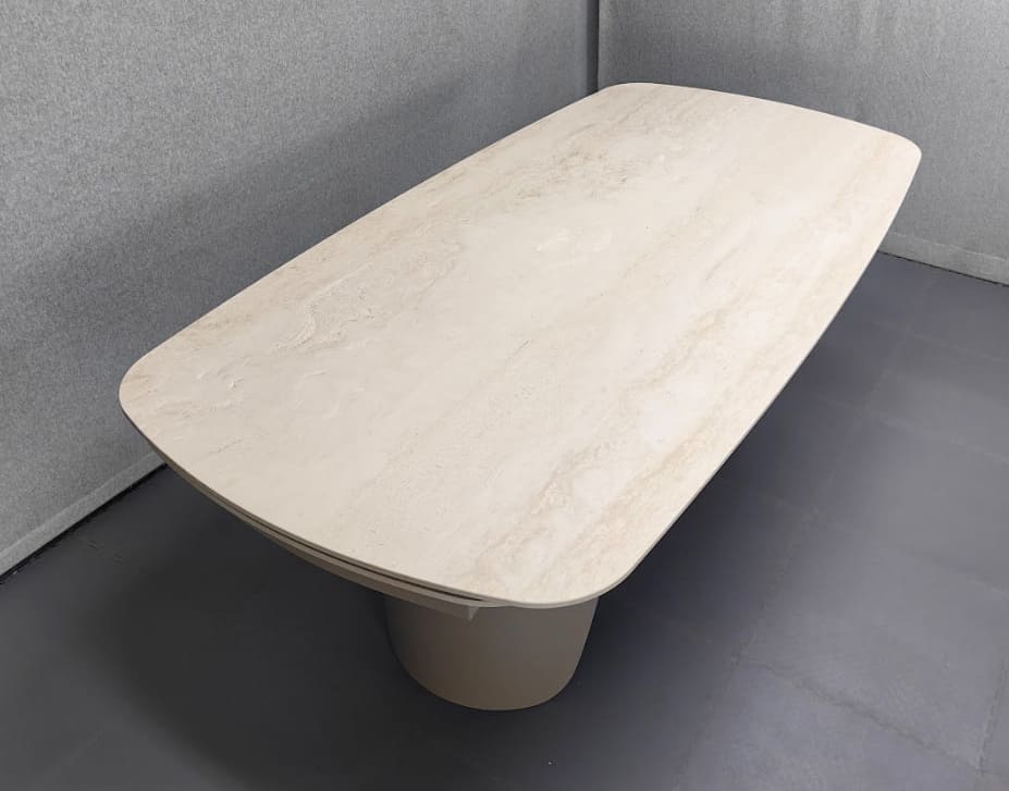 Стіл Опера — це сучасне рішення для просторої кухні чи вітальні, яке поєднує в собі функціональність і стильний дизайн. Його матова керамічна поверхня з візерунком травертину виглядає елегантно й водночас практично.
