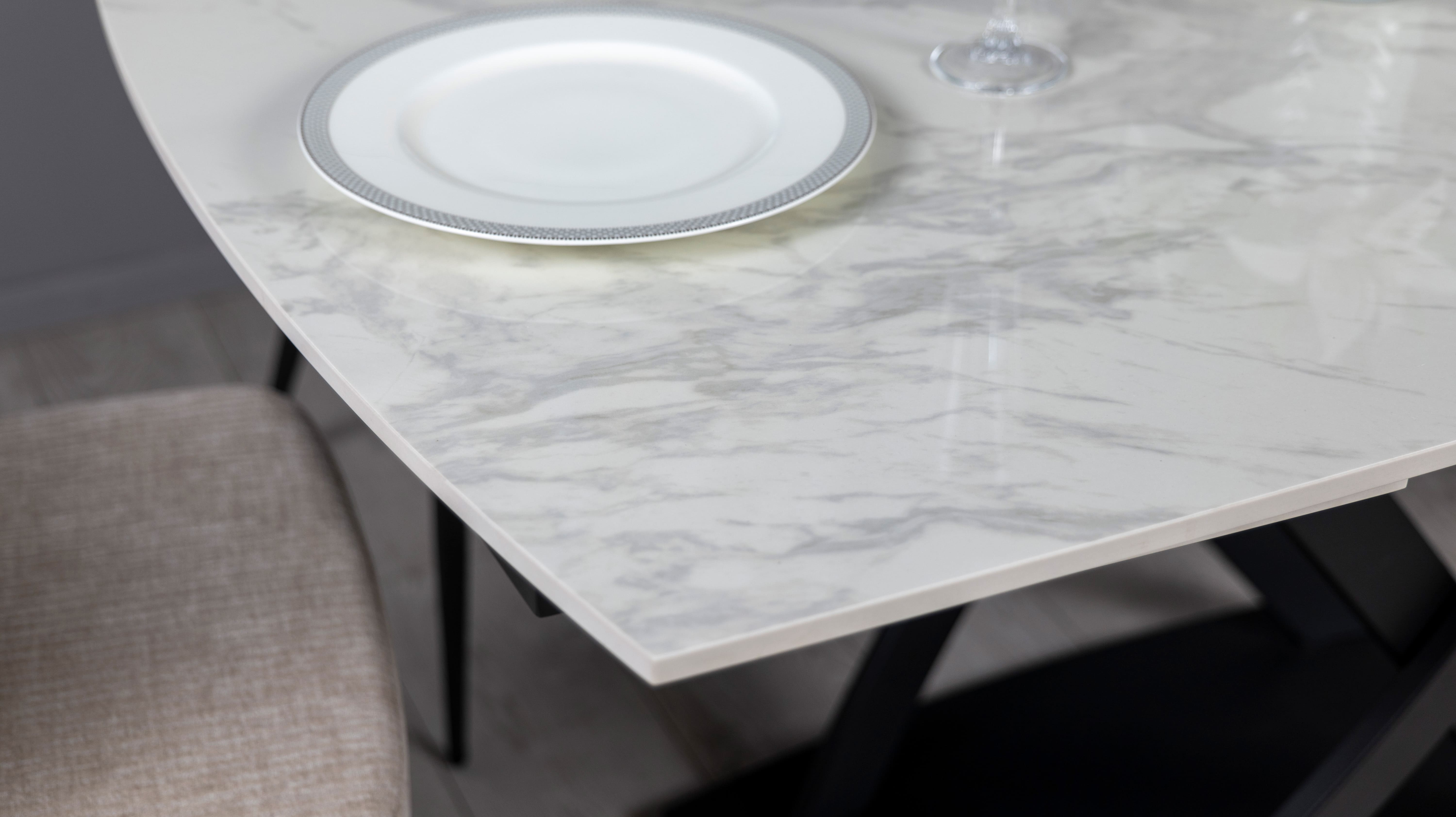 - Біла глянцева стільниця з кераміки - розкішна, міцна та легка в прибиранні.