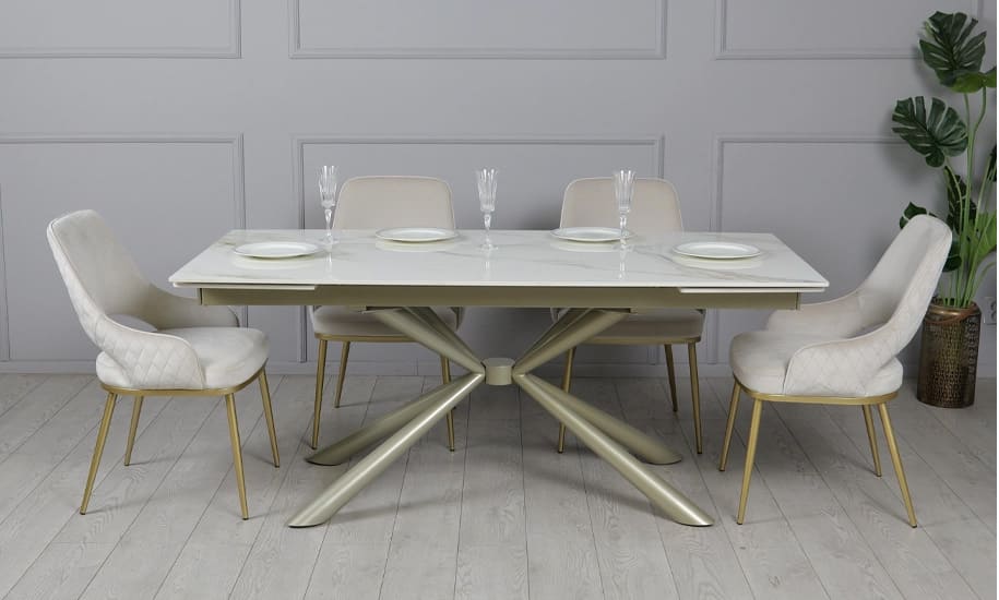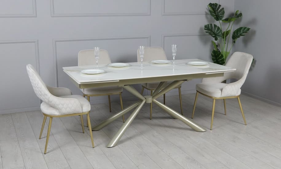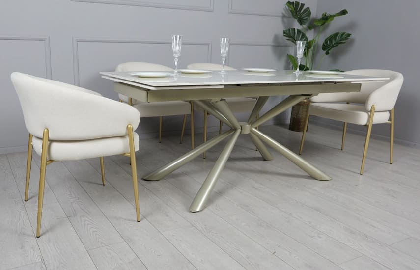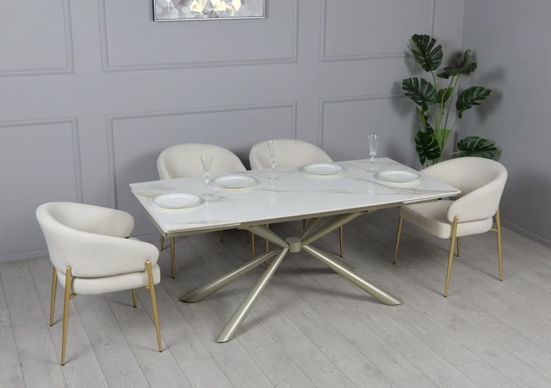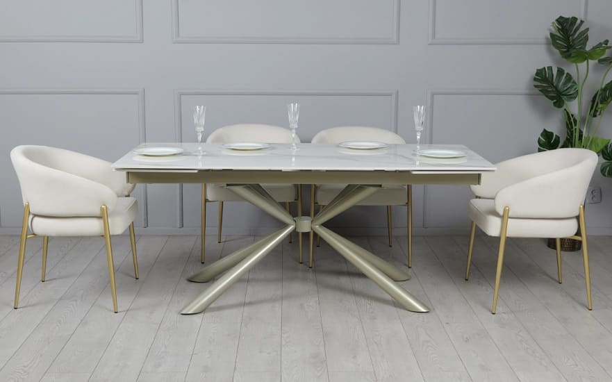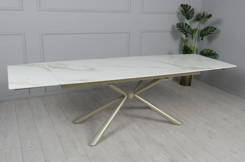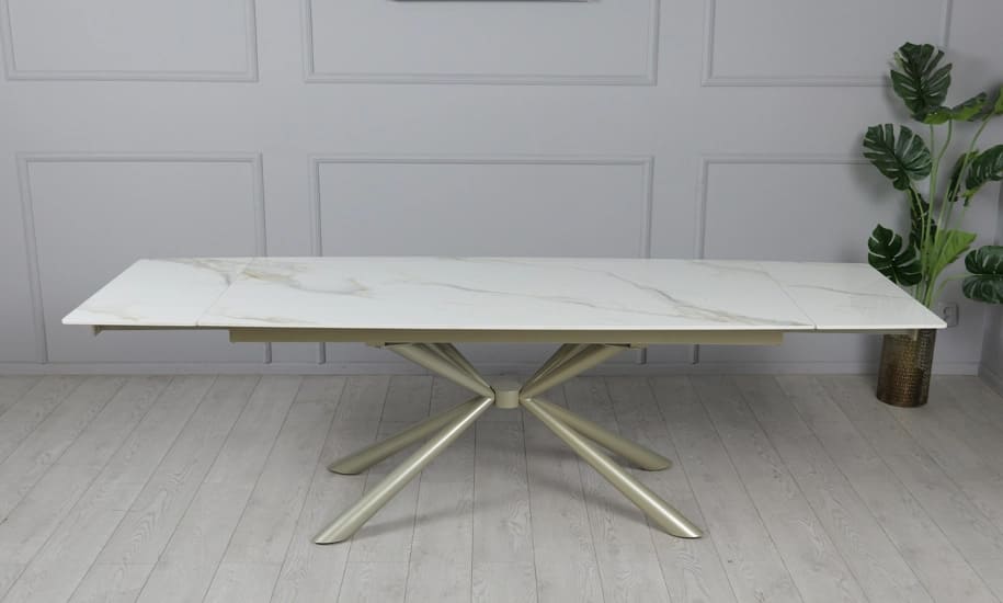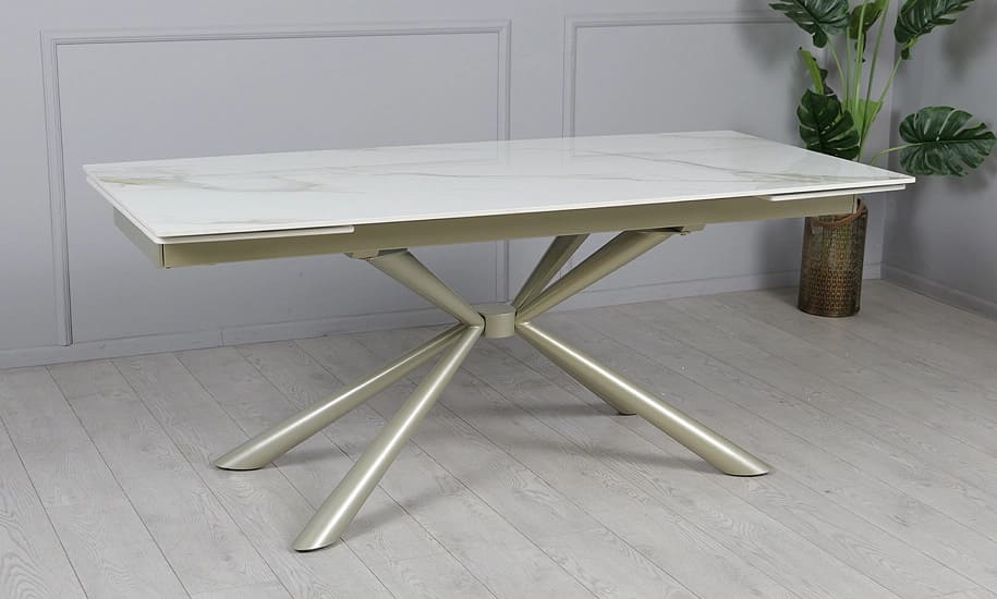Керамічний стіл розкладний обідній Prestol Рим Білий/шампань 90х180 (260) см