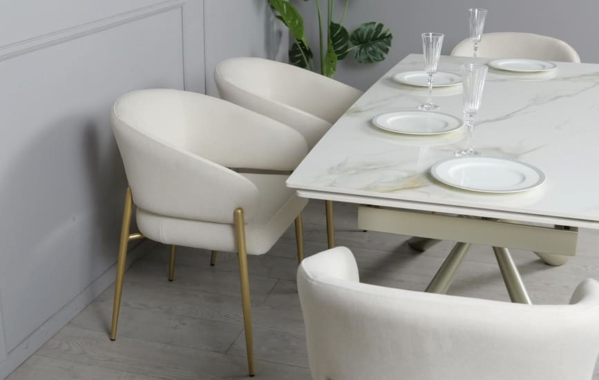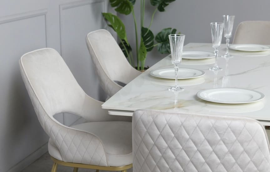 Стіл Рим вражає елегантністю та сучасним дизайном, який підкреслює стиль будь-якої обідньої зони. Глянцева керамічна стільниця з ефектом натурального мармуру виглядає розкішно та легко поєднується як зі світлими, так і з темними елементами інтер’єру.