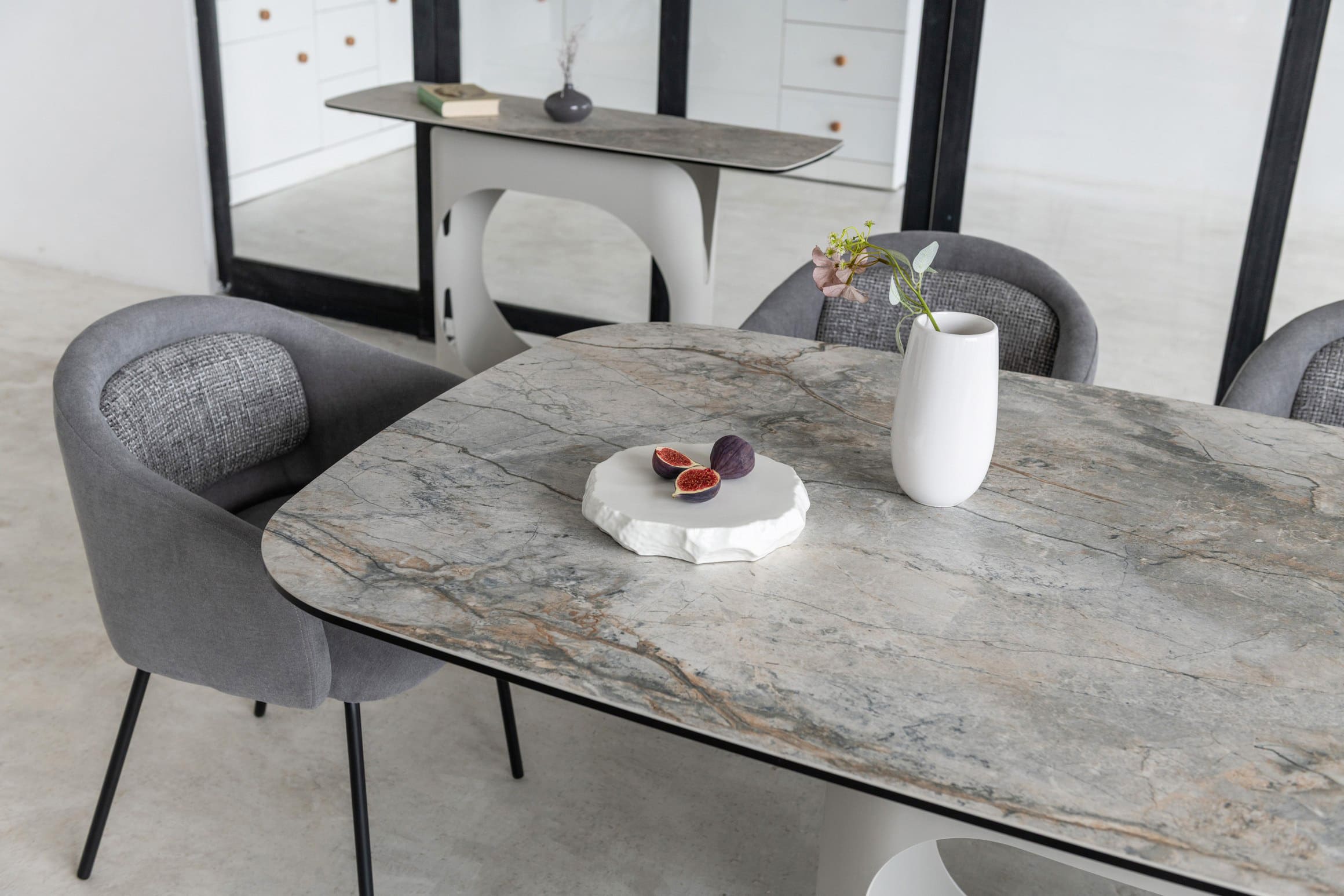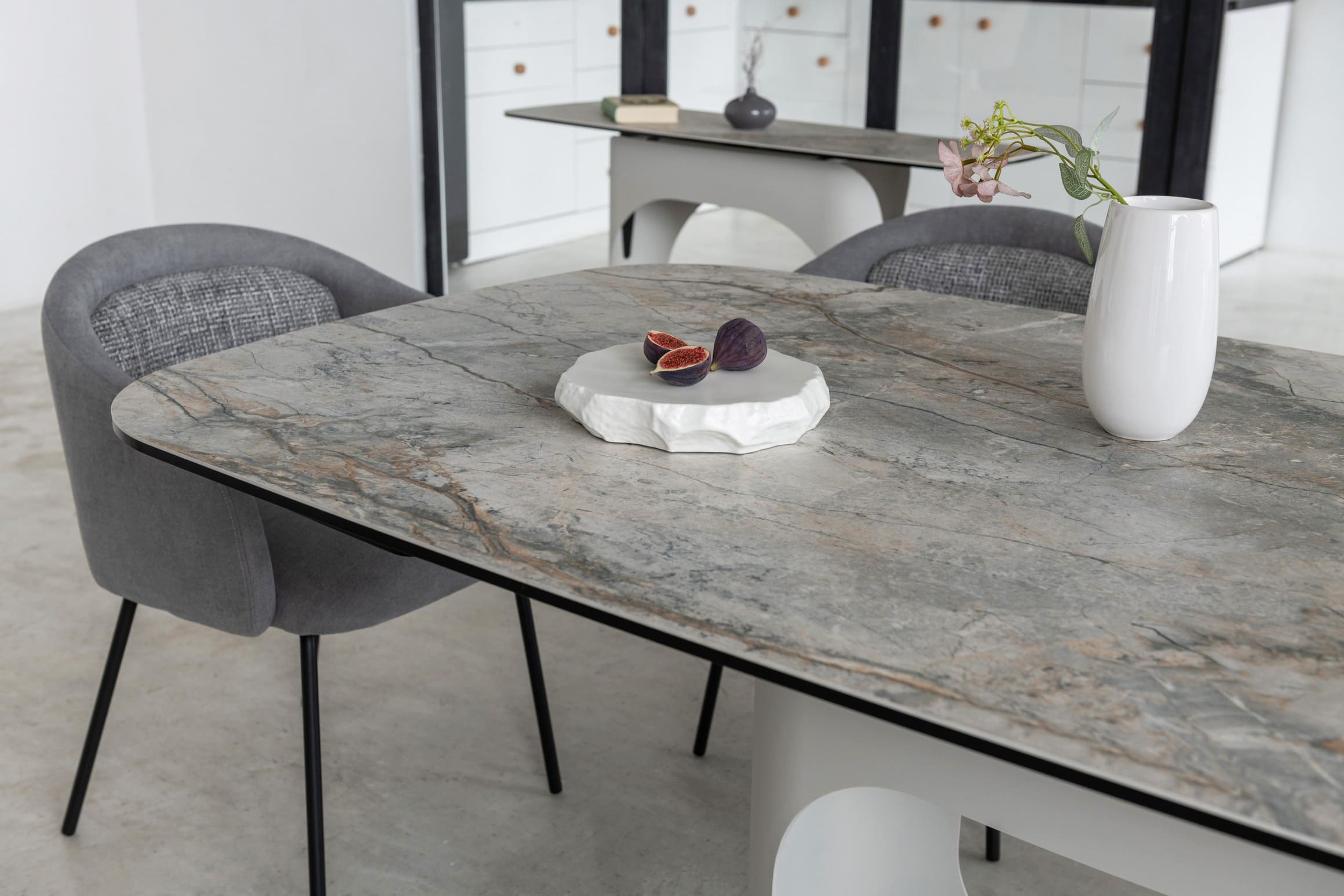 Прямокутна стільниця виготовлена з матової кераміки, посиленої гартованим склом, що забезпечує високу стійкість до подряпин, температурних перепадів і механічних пошкоджень.