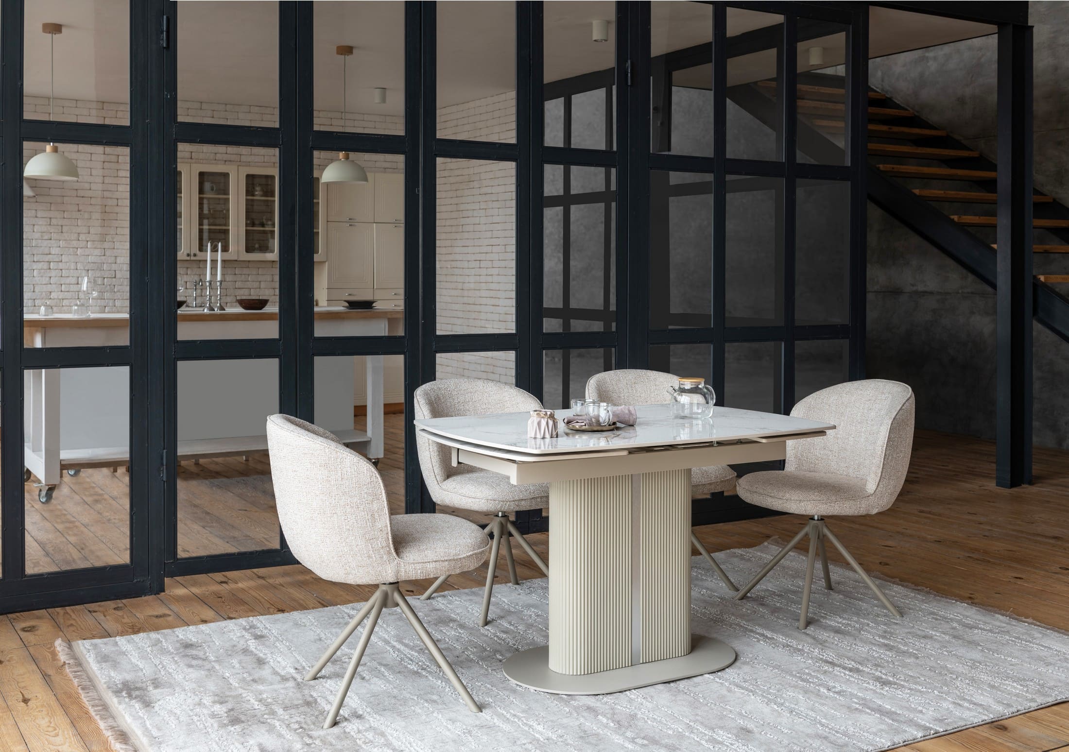 Боковий механізм розкладки перетворює стіл зі 120 на 180 см, тож він однаково зручний для щоденних сімейних трапез і великих дружніх вечерь. Достатньо одного плавного руху — і у вашому розпорядженні простора обідня зона без зайвих зусиль.