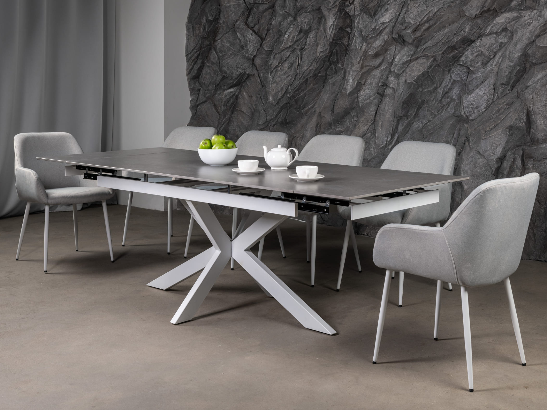 Керамічний стіл Тіціано TML-1150 делікато грей + білий – це поєднання вишуканого дизайну та практичності. Його прямокутна форма гармонійно виглядає у сучасних інтер’єрах, а розкладний механізм із боковим розширенням дозволяє збільшувати довжину стільниці з 170 до 220 см, забезпечуючи комфорт для великих компаній.
