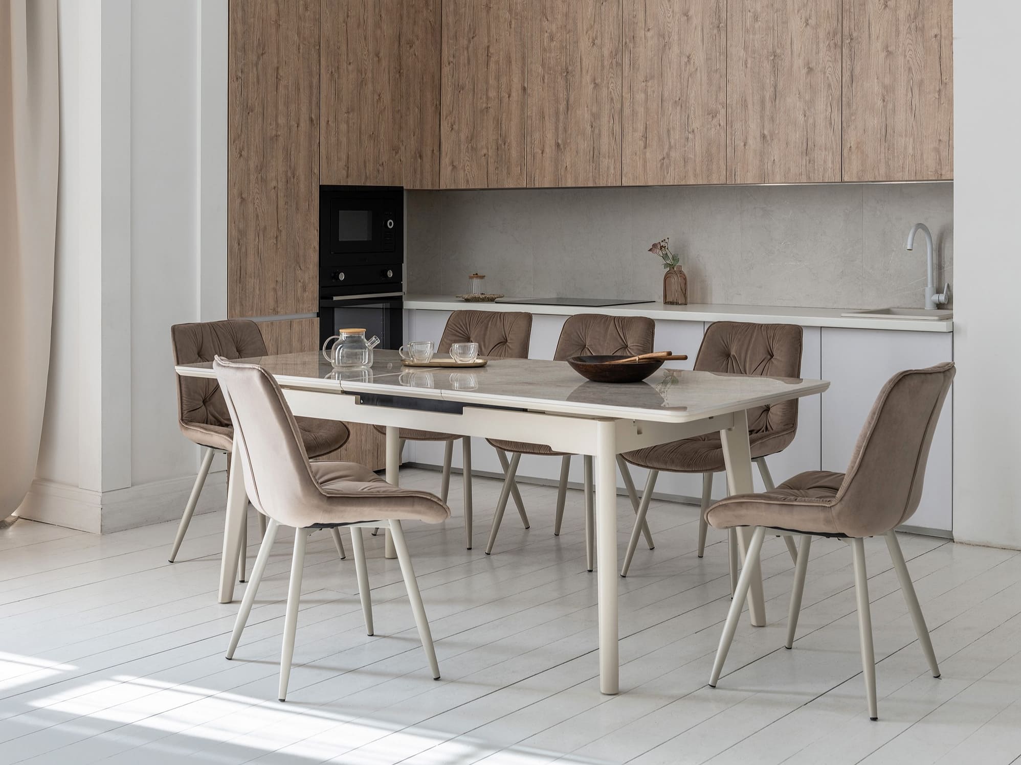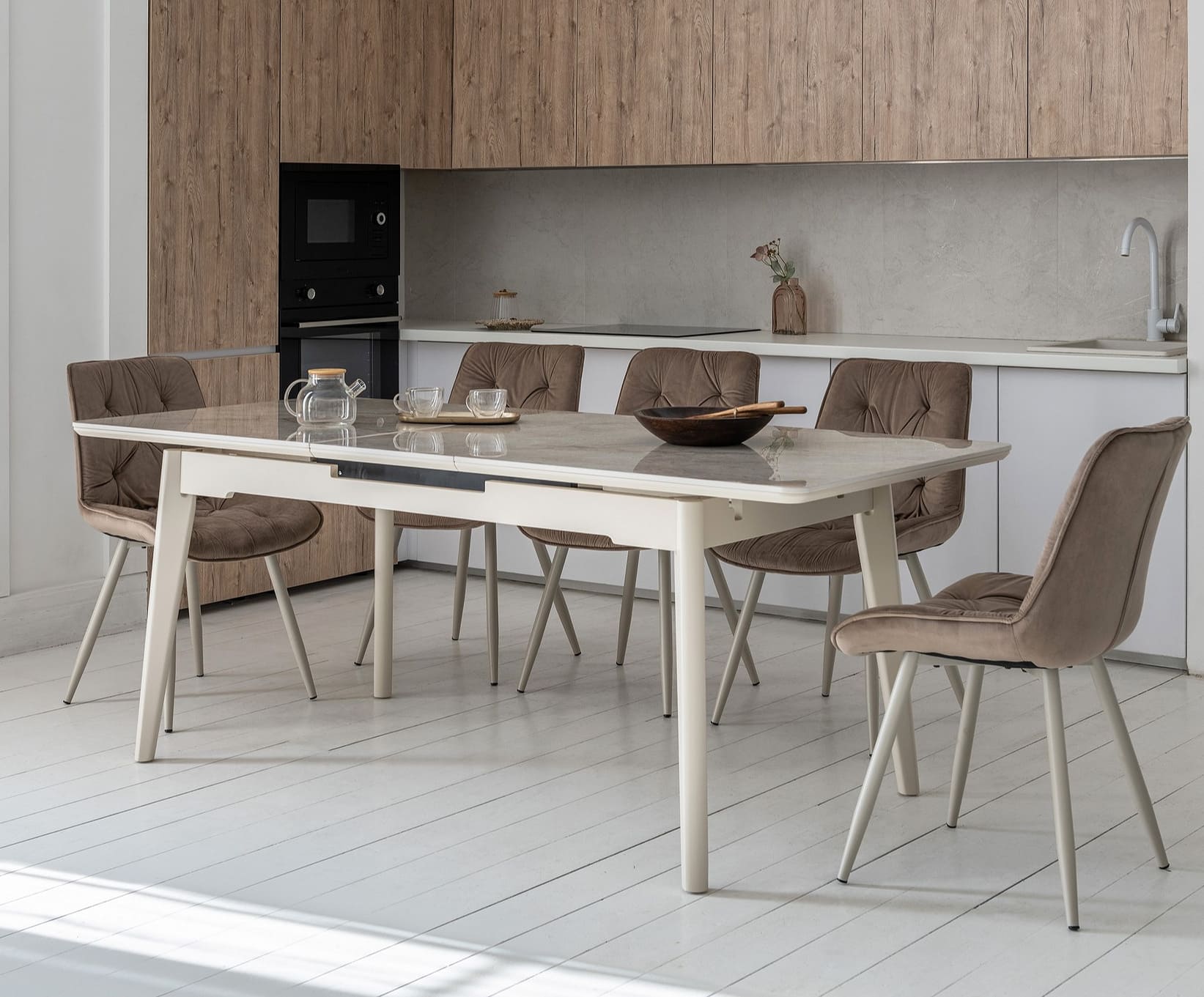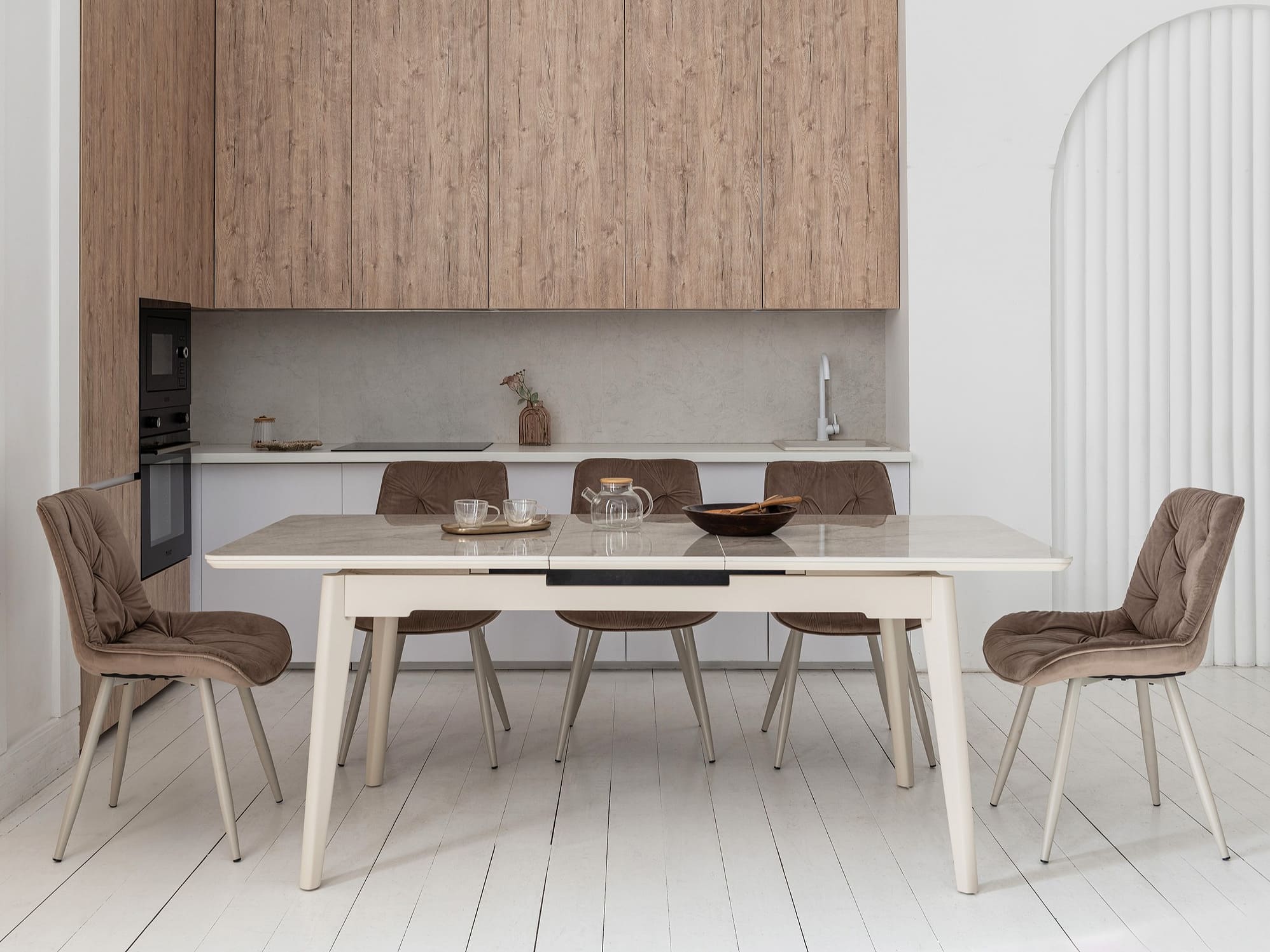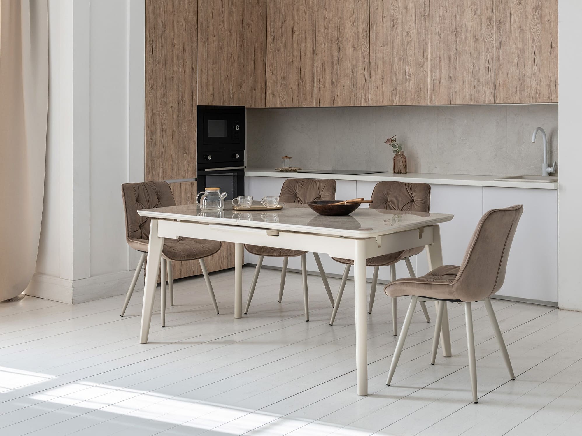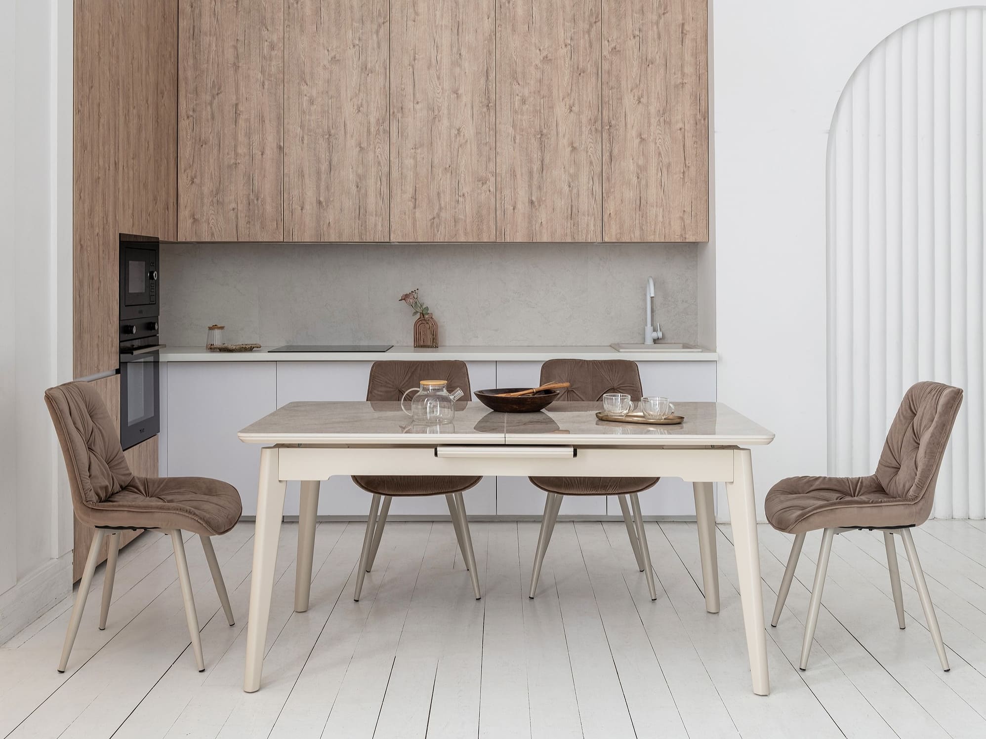 Керамічний стіл розкладний обідній Vetro Mebel TM-125 Містик грей/капучіно