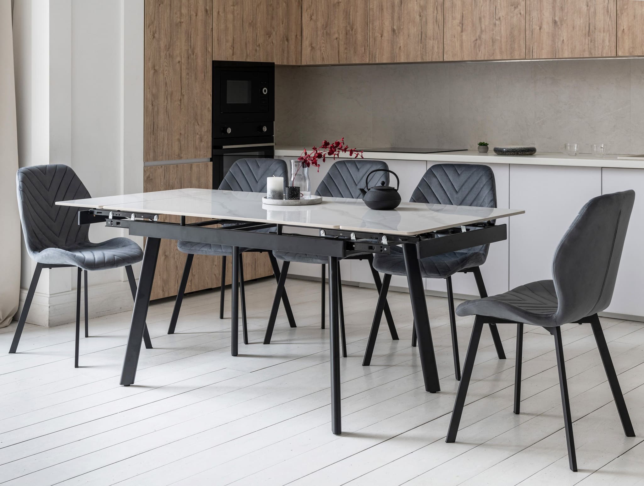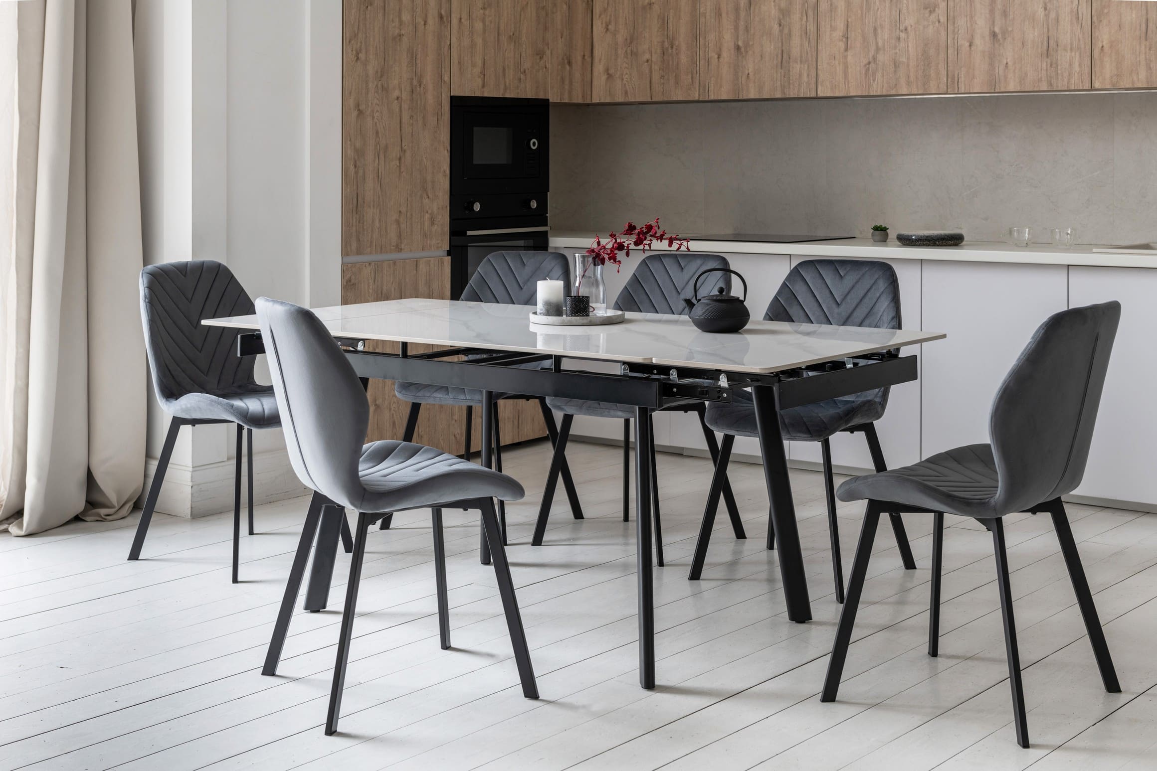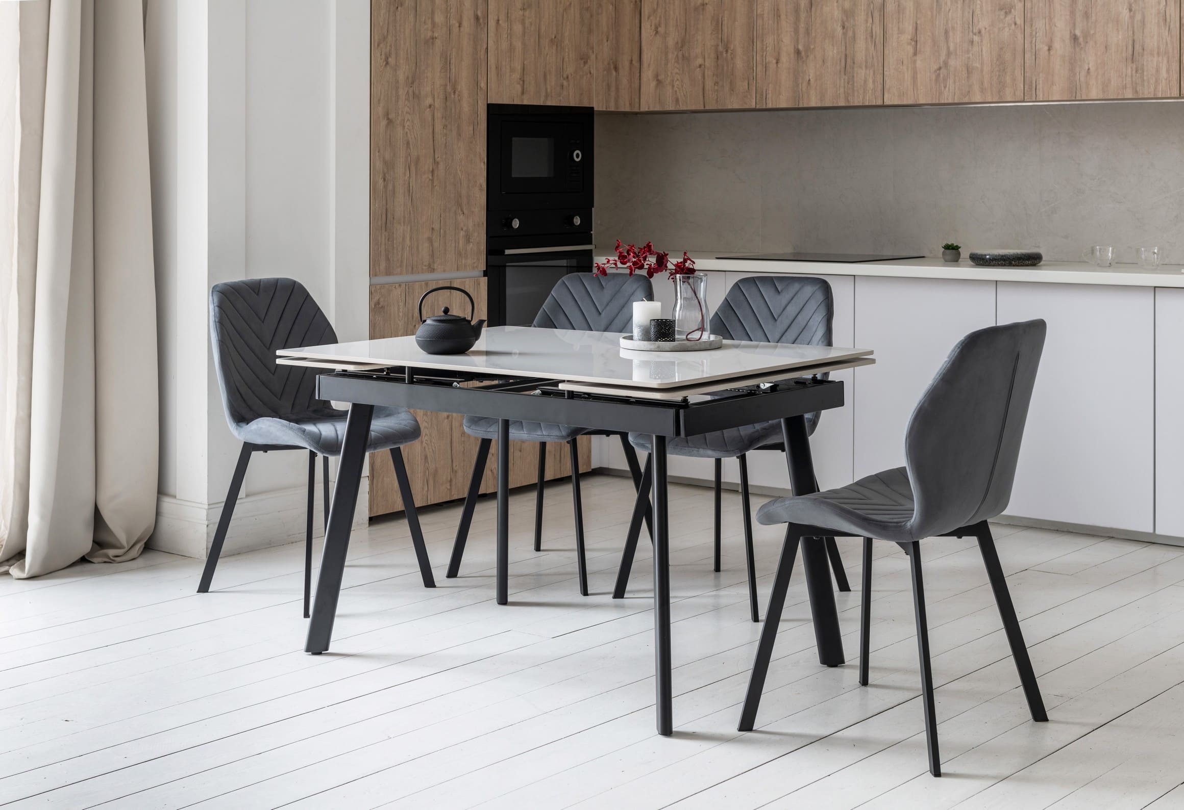 Завдяки боковому механізму розкладання стіл легко трансформується з 120 до 180 см, забезпечуючи достатньо місця для щоденного використання або святкових застіль у колі близьких.