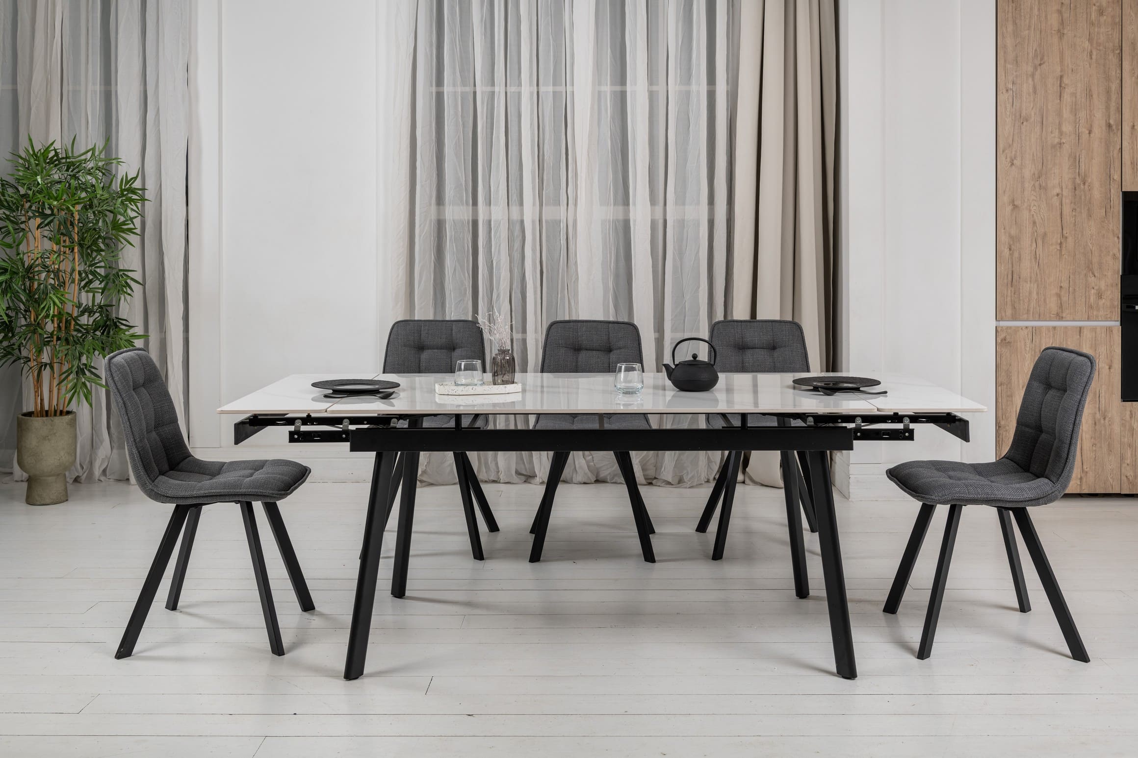 Стіл обладнаний зручним боковим механізмом розкладання, завдяки якому його довжина легко збільшується з 150 до 210 см. Це дозволяє комфортно розмістити велику кількість гостей як у щоденному використанні, так і під час святкових подій.