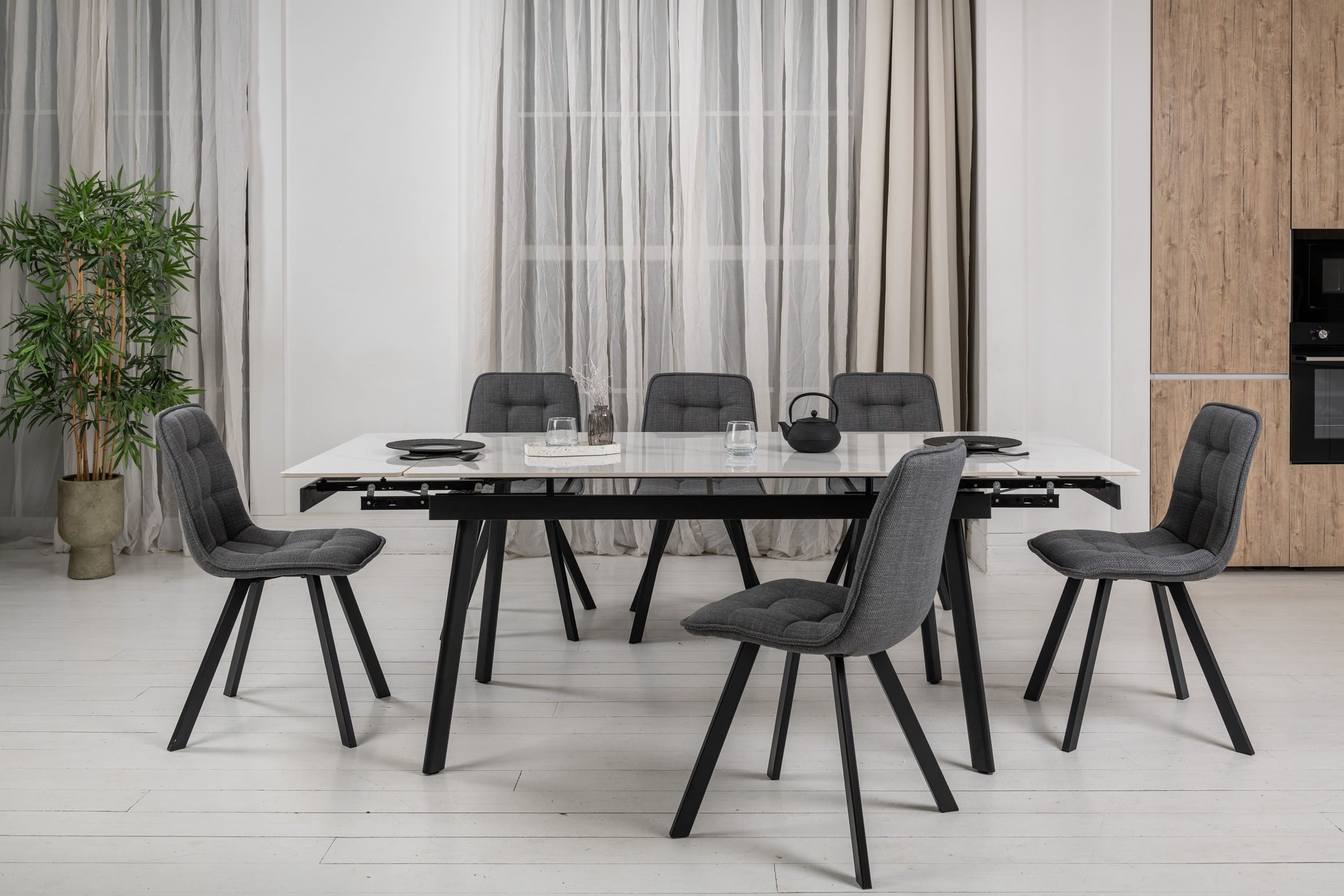 Керамічний стіл TM-98 у відтінку білий мармур + чорний — це поєднання вишуканої естетики та практичності, яке стане ідеальним вибором для сучасної їдальні чи вітальні.